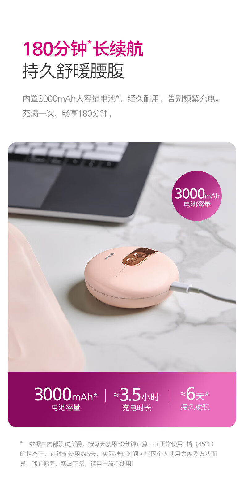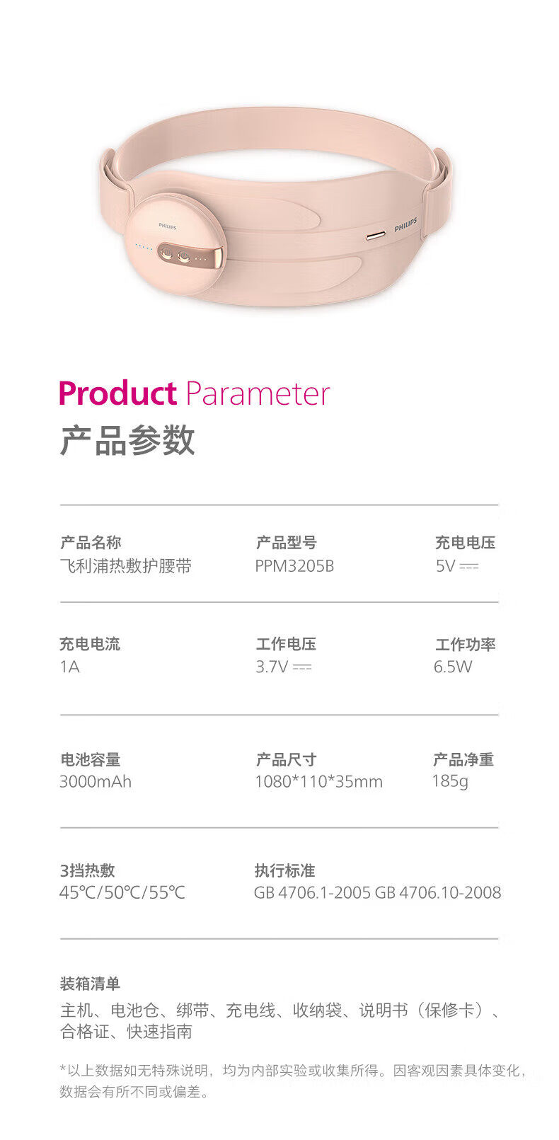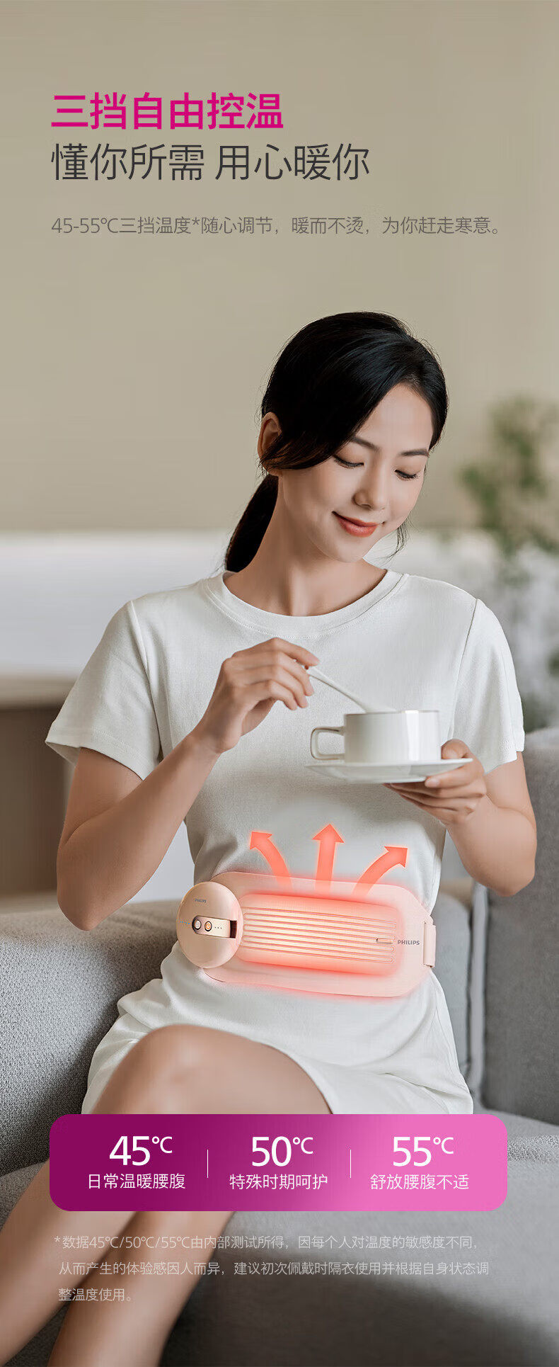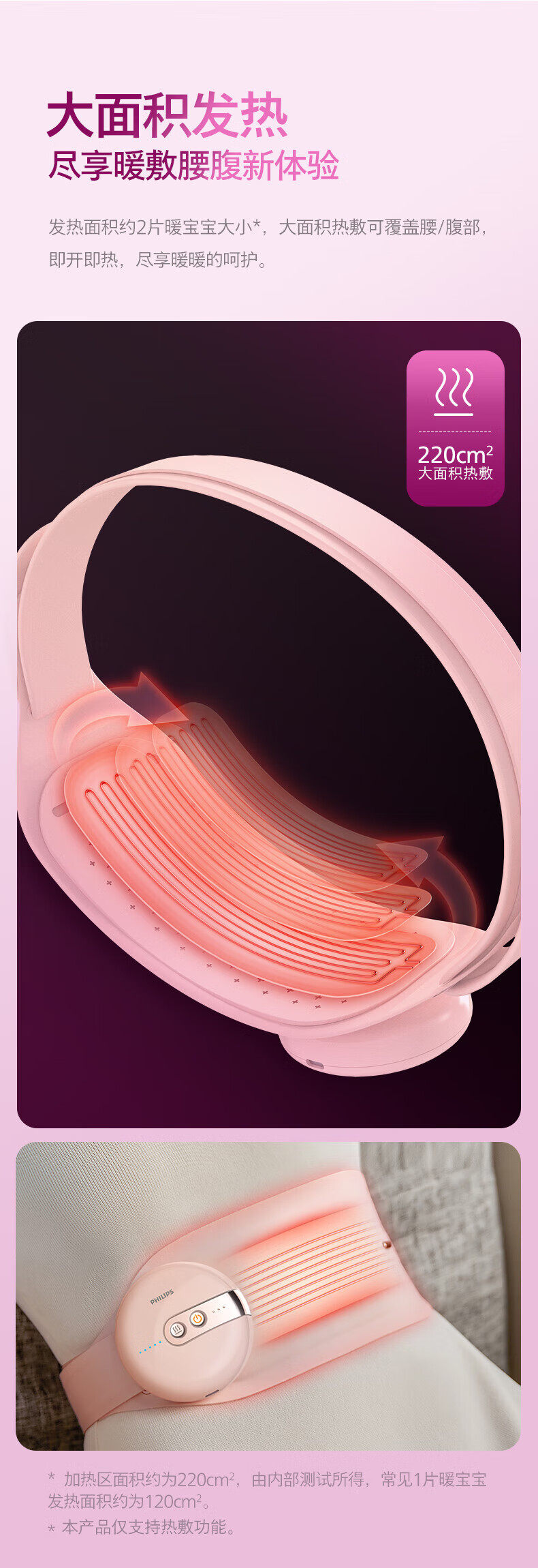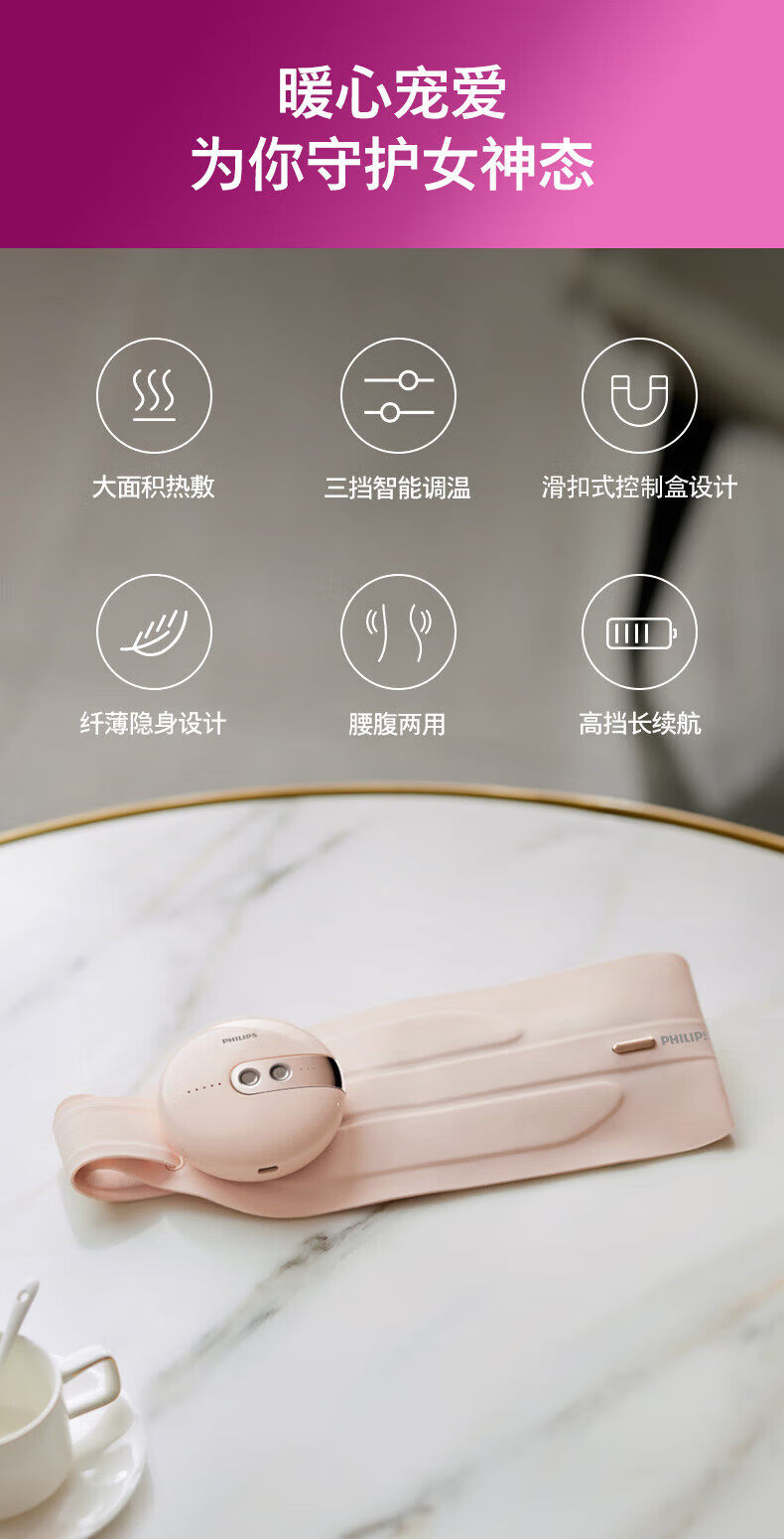 飞利浦(PHILIPS)暖腹仪4区5档调温缓解腰酸暖宫腰带生理期热敷护腰 PPM3205B
