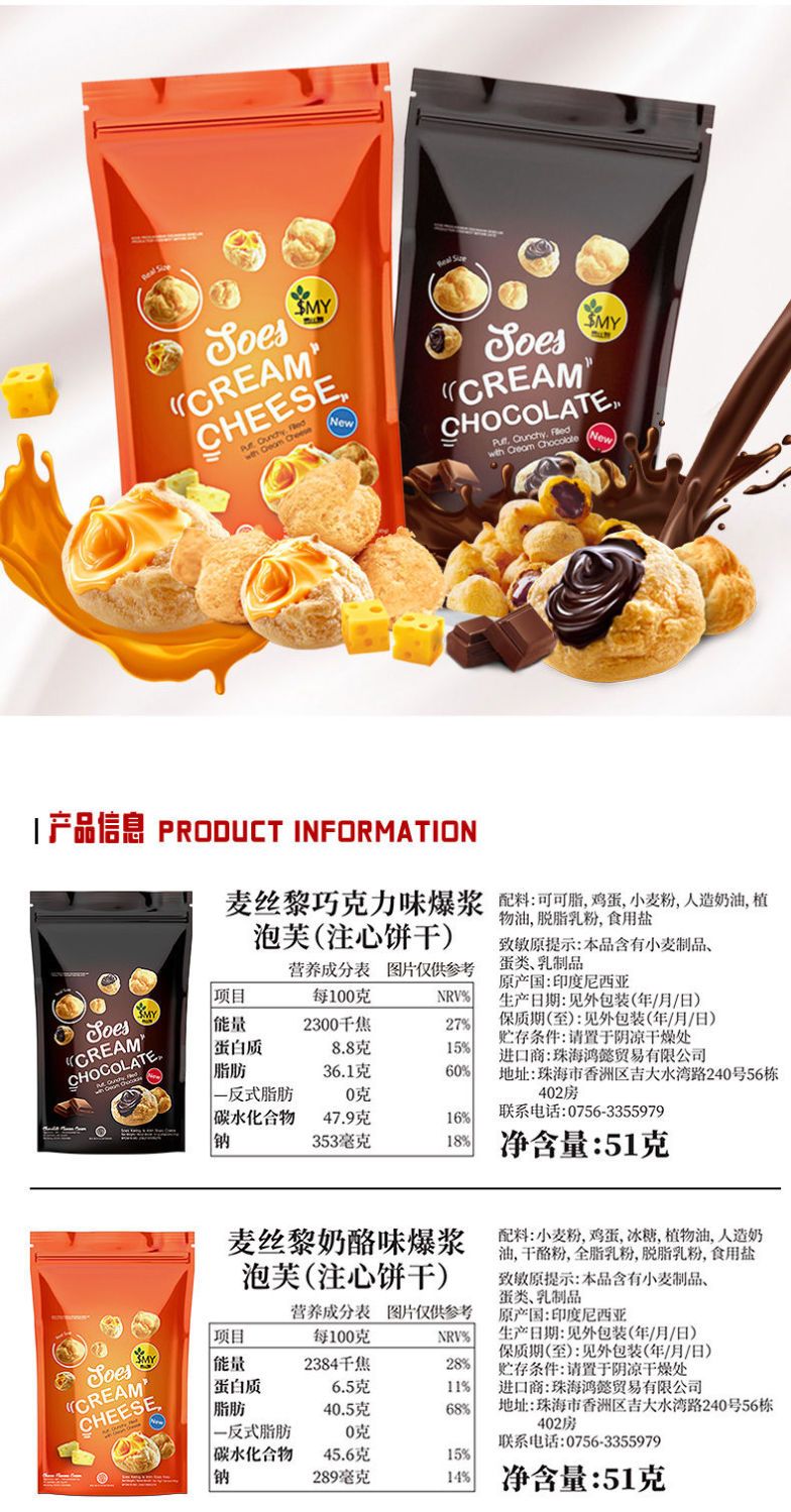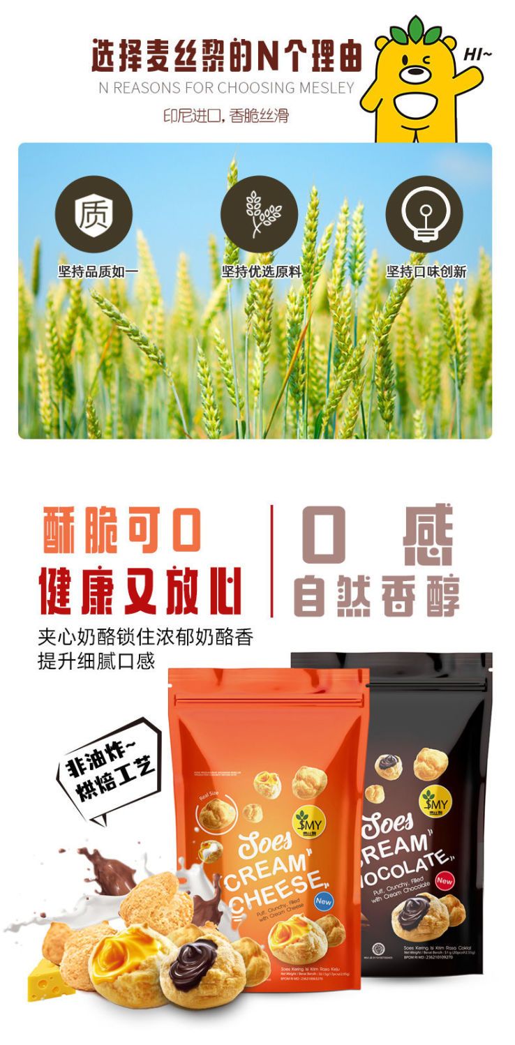 【爆款超低价预售 急单慎拍】【2袋装】麦丝黎泡芙巧克力味夹心饼干奶酪泡芙球休闲进口零食