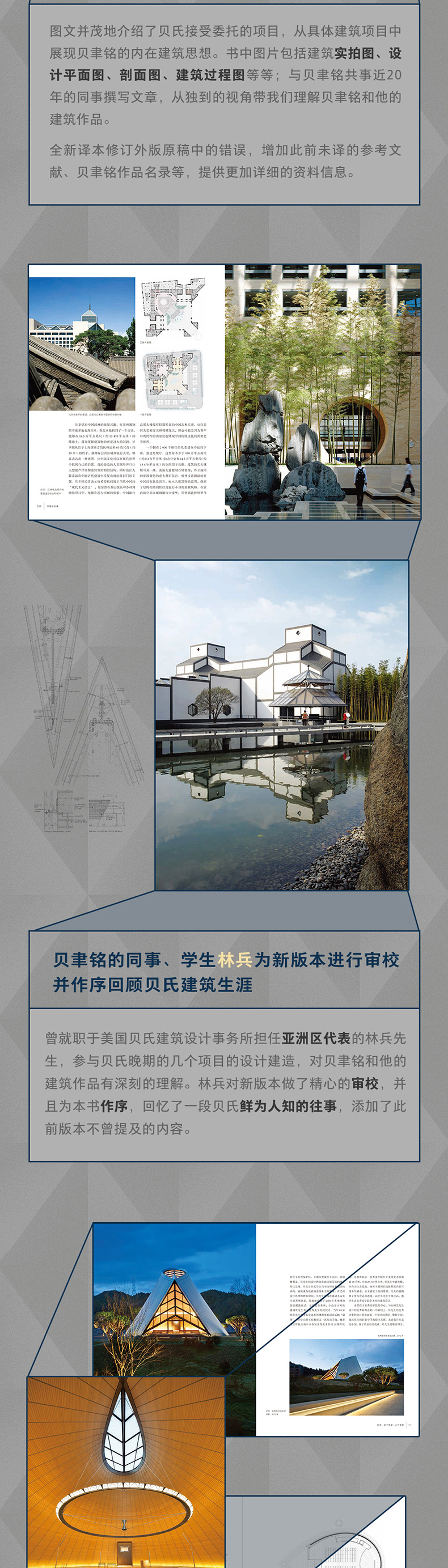 菲利普·朱迪狄欧:1980—2002年任法国艺术期刊《艺术知识》总编,出版逾50部现代建筑学著作,其中包括安藤忠雄、诺曼·福斯特和理查德·迈耶的专论。珍妮特·亚当斯·斯特朗:建筑史学家、布朗大学博士,曾任教于罗得岛设计学院和新学院,后加入贝聿铭合伙人建筑事务所,任沟通总监及事务所历史学家近20年,对贝聿铭及其作品有着独到的见解。