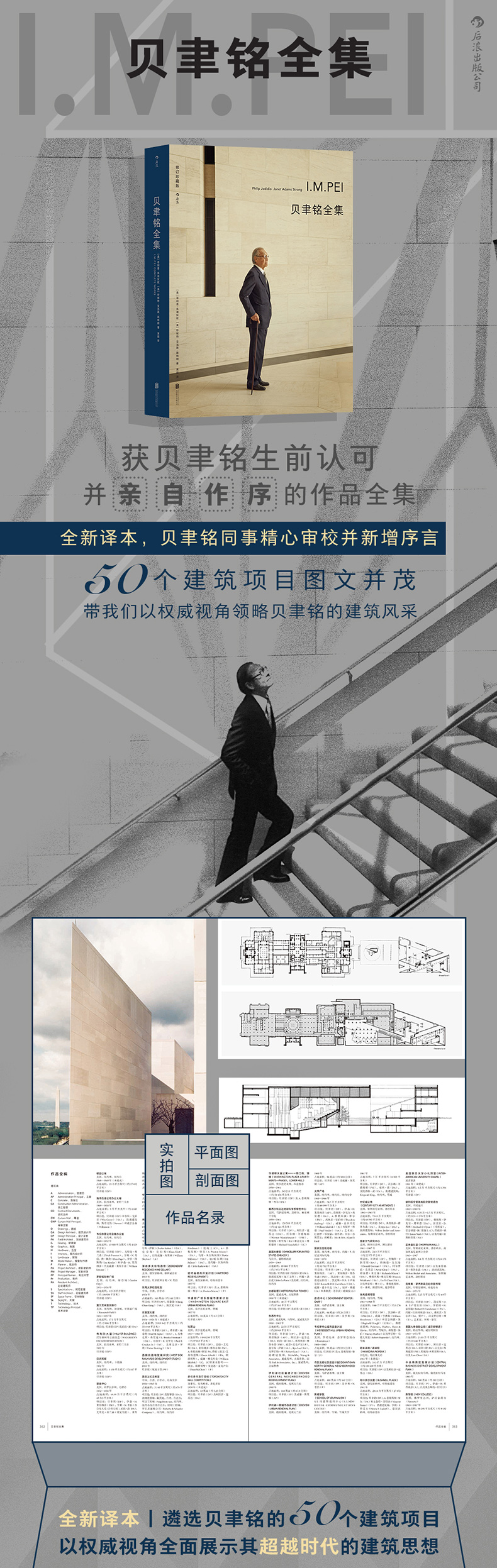 本书是迄今为止*权威、全面的贝聿铭作品集,遴选了贝聿铭各个时期以主要负责人或建筑设计师承担的50个建筑项目,图文并茂地介绍了贝氏接受项目委托的背景、进行项目设计和建造时的构思与具体实施过程,所经历的种种波折和项目完成后产生的影响,以及人们对其作品的评价等。这50个建筑项目按时间顺序排列,时间跨越60年,串联起来就是一部贝聿铭的建筑生涯史,展示了贝聿铭一众卓越的建筑作品和其超越时代的建筑思想。书后附有贝聿铭全部作品名录,包含创作时间、项目地址、参与人员等重要信息。贝聿铭晚年时的同事、木心美术馆的设计者林兵先生特为此书写了纪念性的序言,回顾了贝聿铭先生一段鲜为人知的往事。