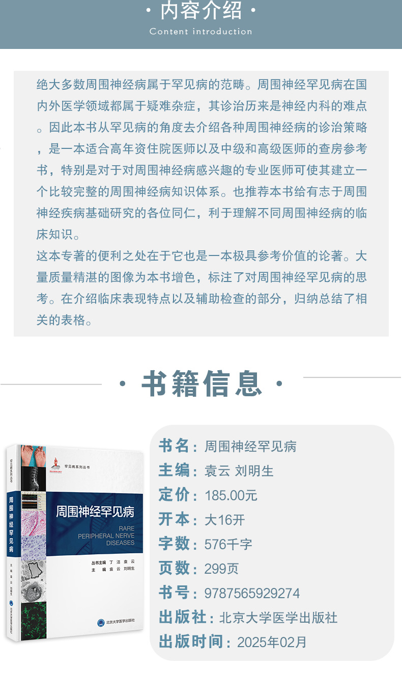 周围神经罕见病 罕见病系列丛书 袁云 刘明生 主编 周围神经系统疾病的管理策略 遗传性中间型运动感觉神经病 北京大学医学出版社