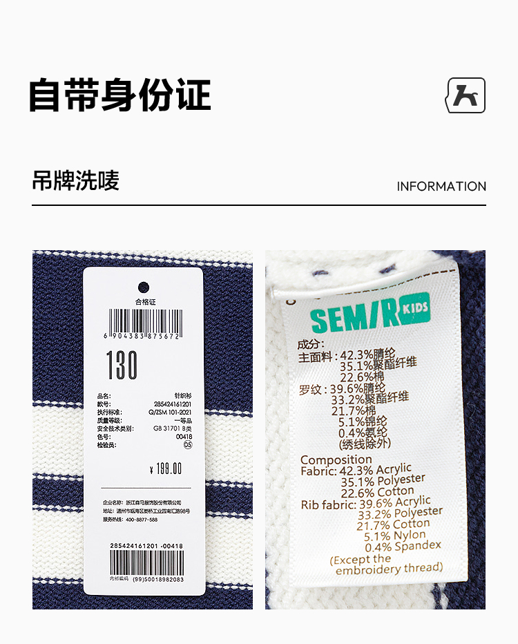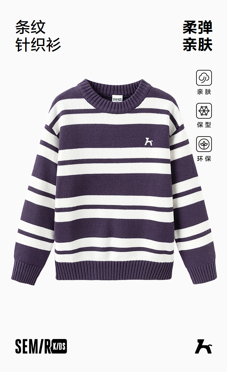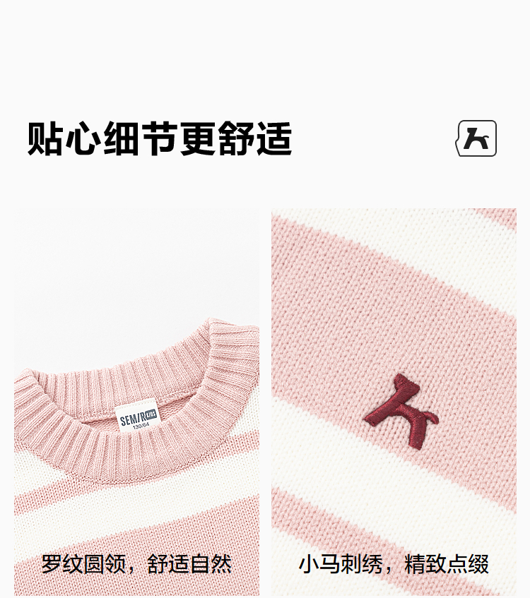 森马儿童毛衫新款撞色条纹针织衫冬季时尚绣花毛衣男童女童装