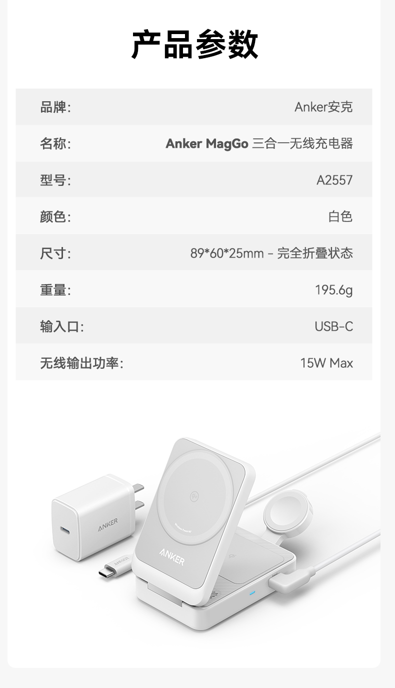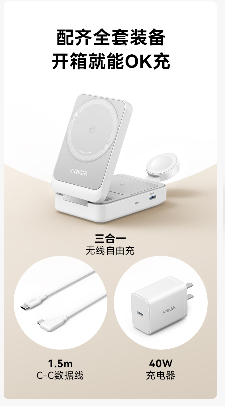 Anker安克 MagGo磁吸三合一无线充电器OK充 B2557