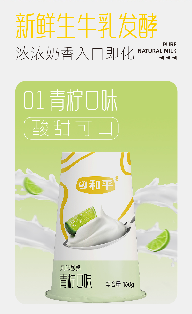 【超好喝!】倒置杯青柠口味酸牛奶160g*3杯