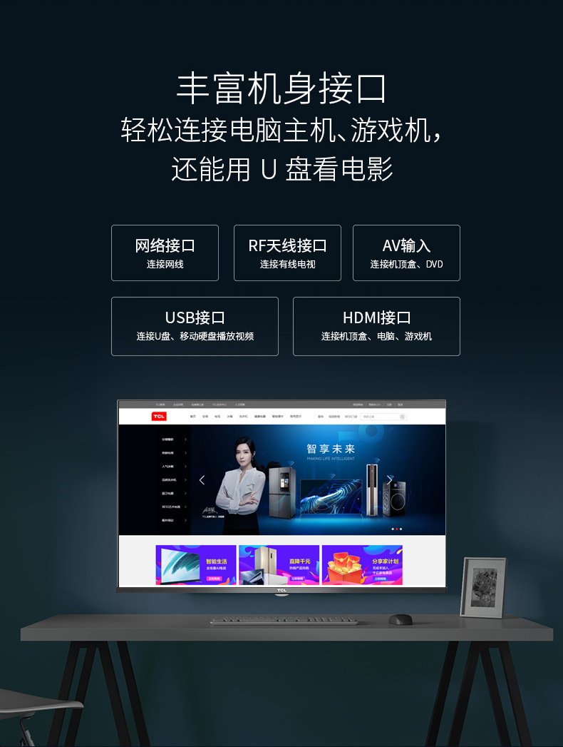 TCL 32寸全面屏wifi智能网络液晶电视【LY】