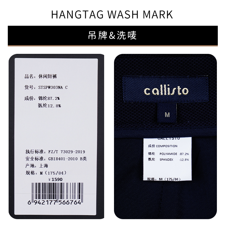 callisto藏青锦纶混纺休闲短裤 STSPW303C