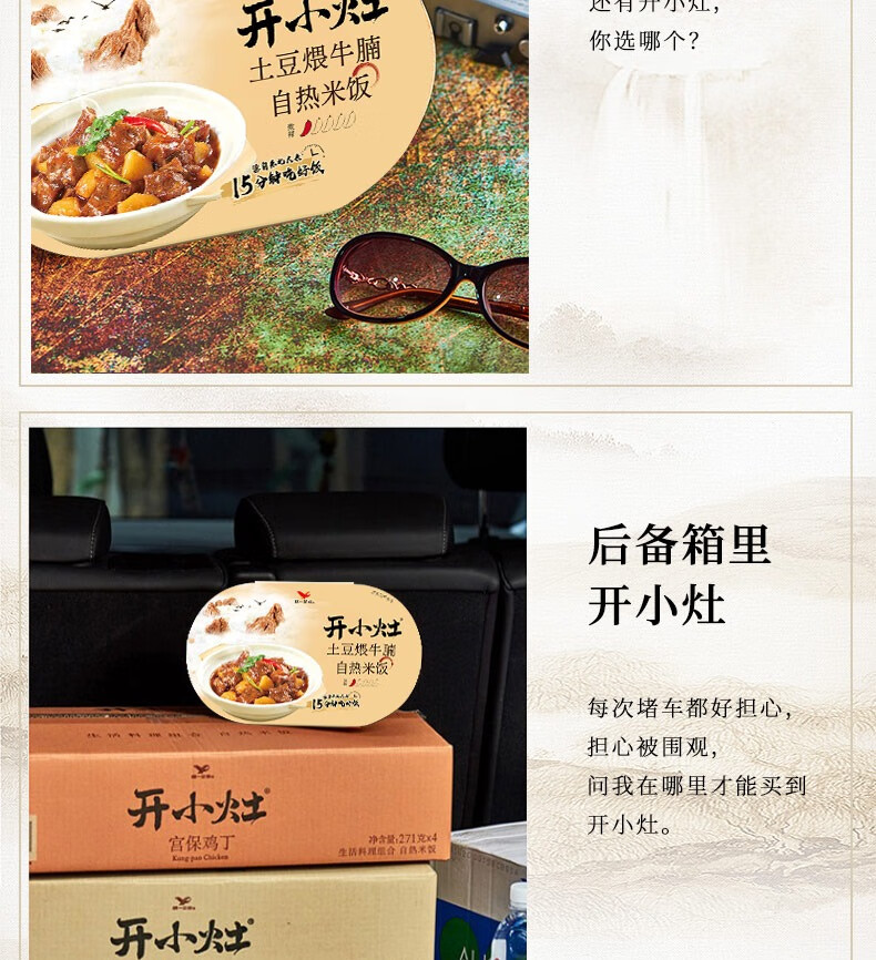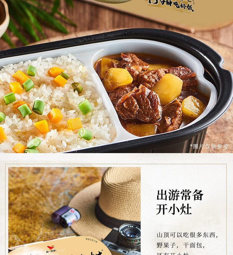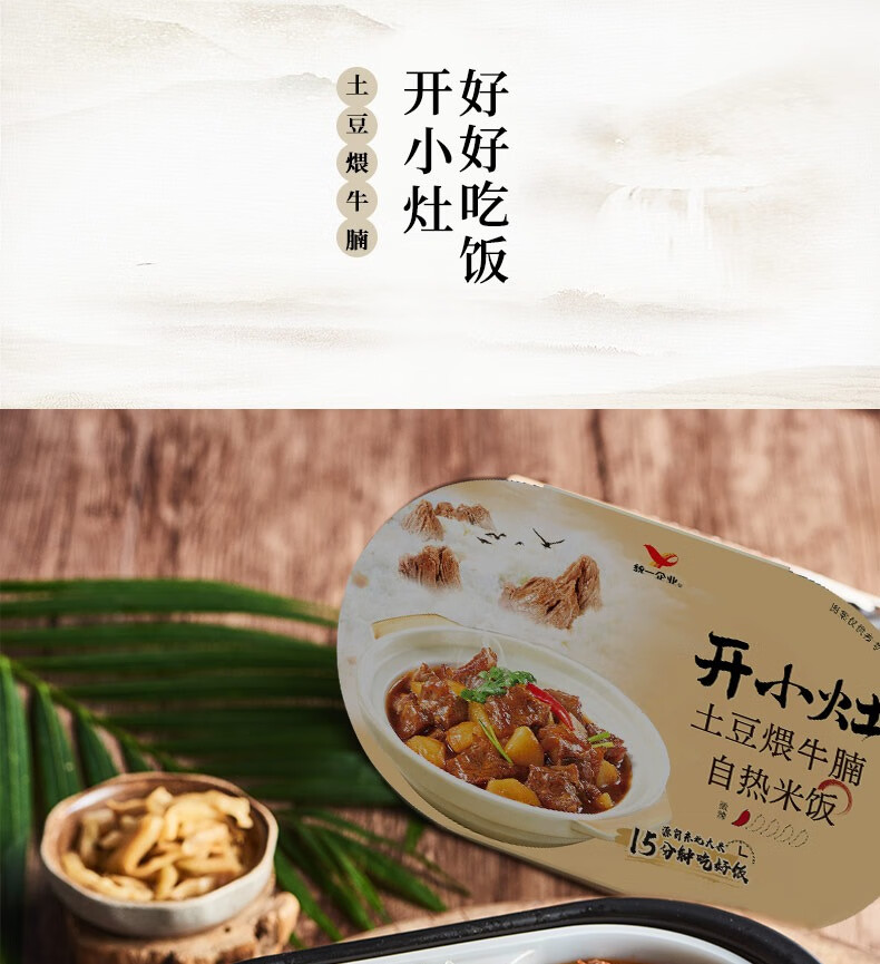 统一】自热米饭 统一开小灶自热米饭(土豆煨牛腩/香菇烧肉/水煮牛肉/宫保鸡丁/煲仔饭/三鲜烩四喜)271g/盒 4盒/箱 1箱(8个月)