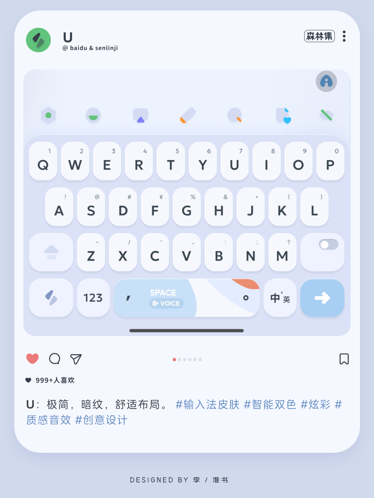 < U > 极简暗纹,质感设计。- 快捷功能,百度输入法。