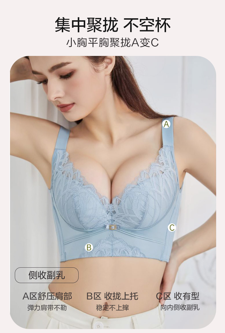 大胸显小 全罩杯 无钢圈 轻薄透气水晶杯文胸