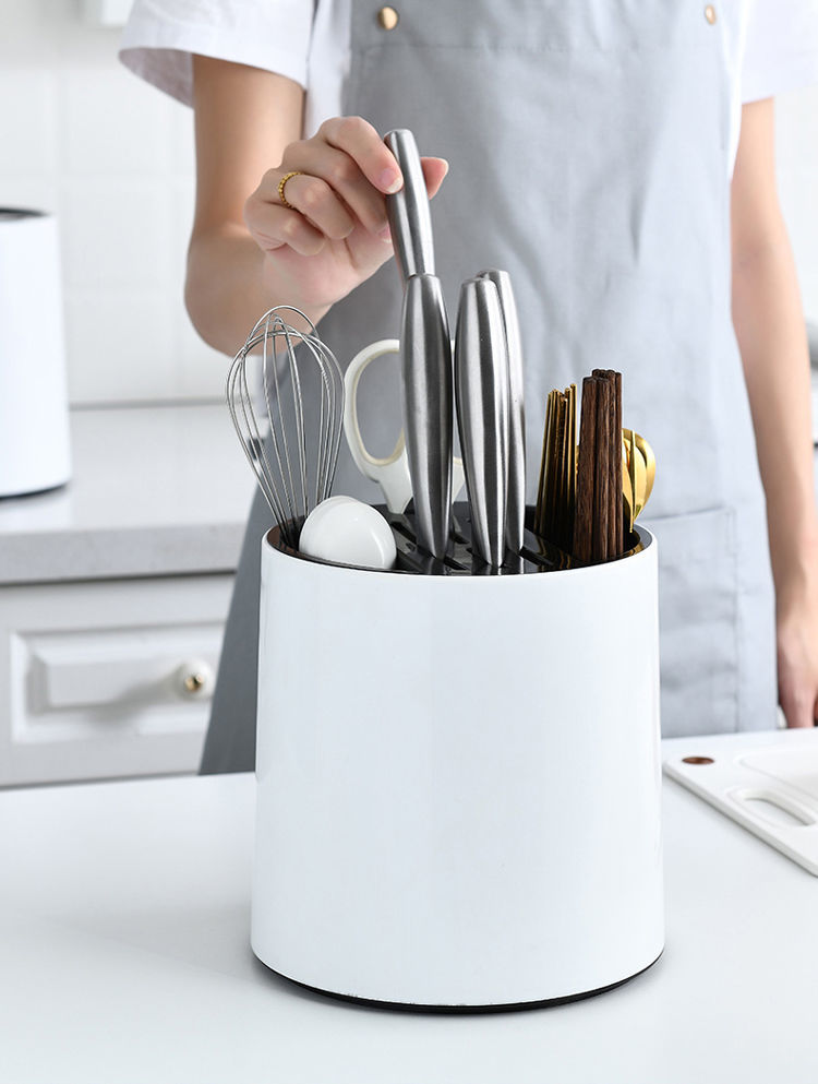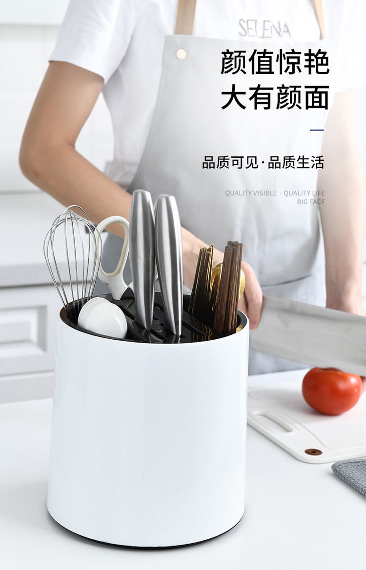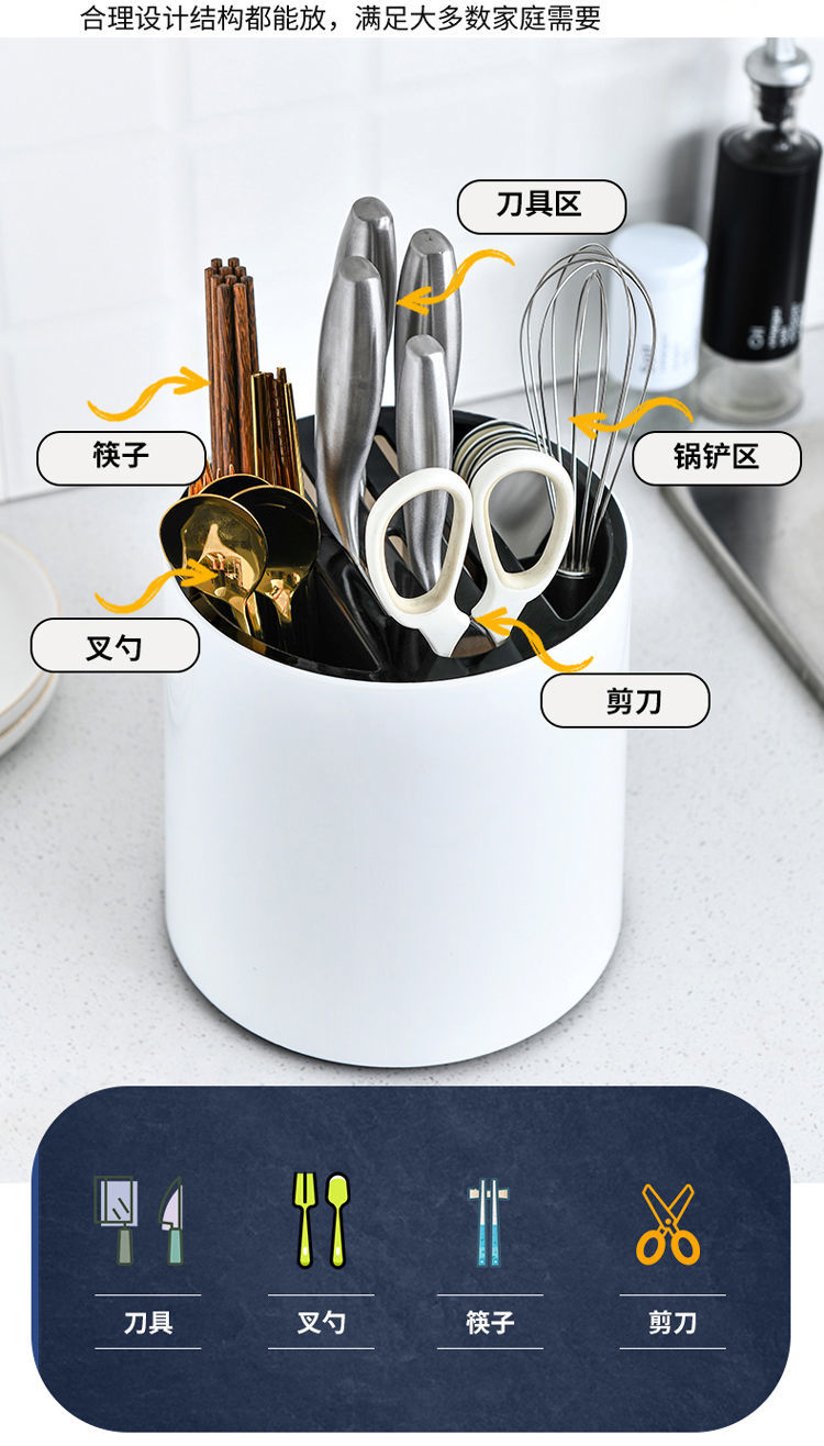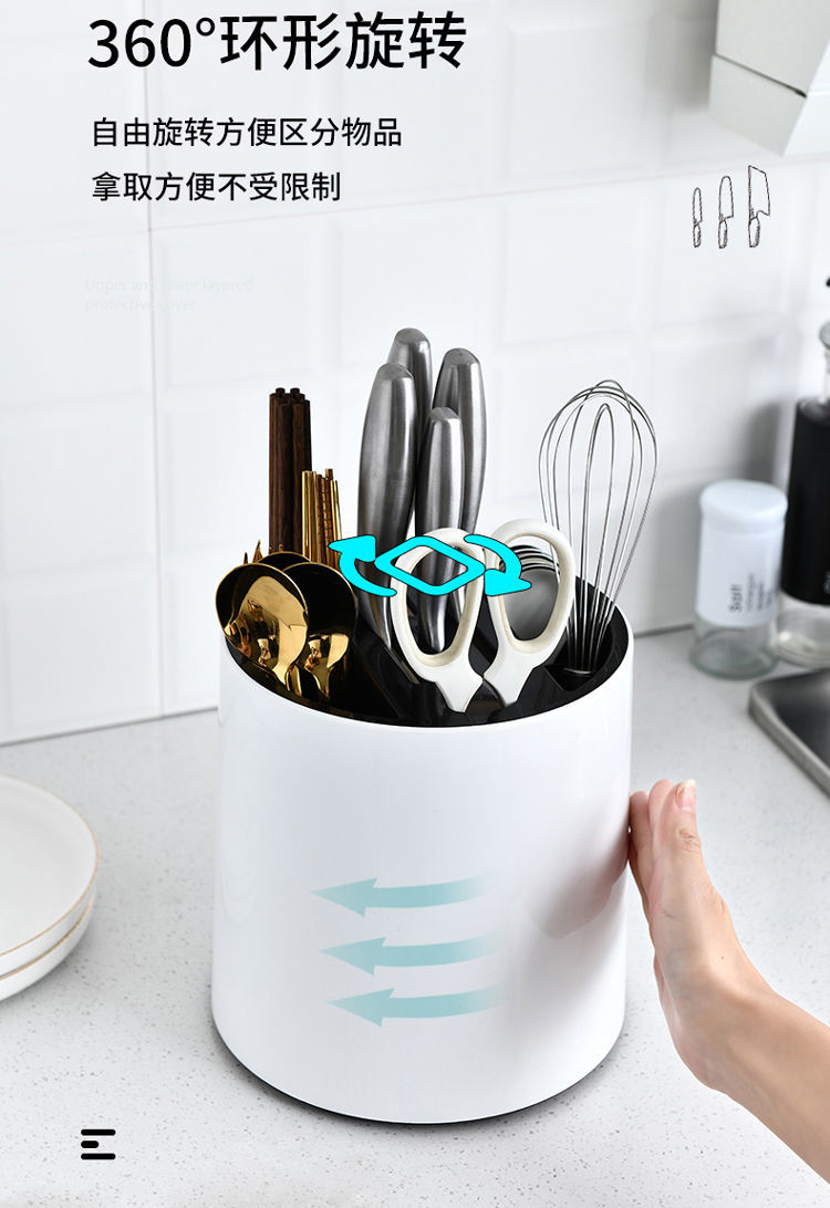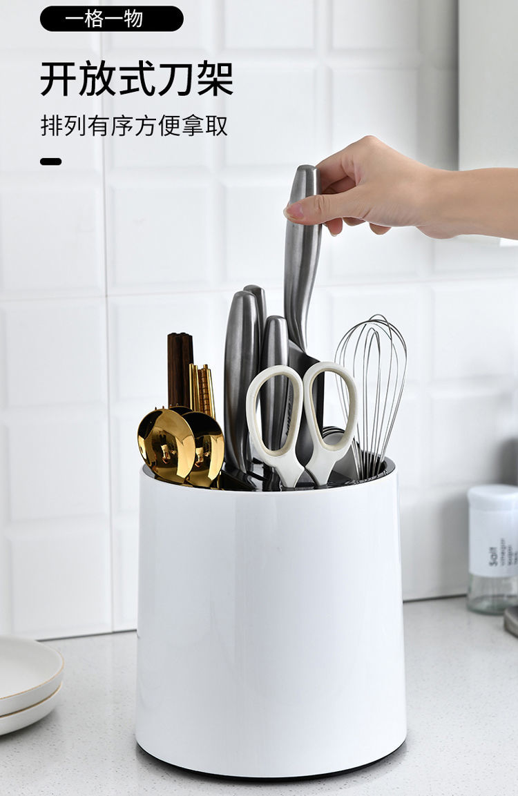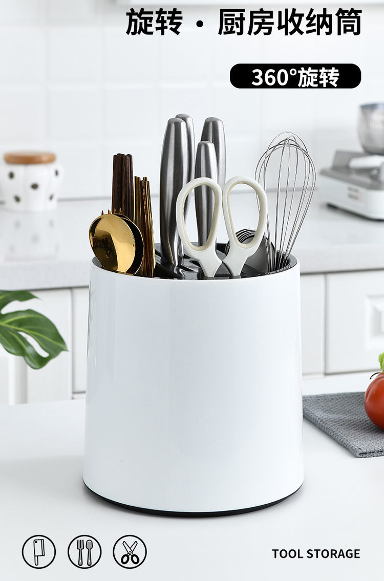 厨房旋转刀架多功能刀具置物架 沥水筷笼刀座筷子盒勺子餐具收纳筒