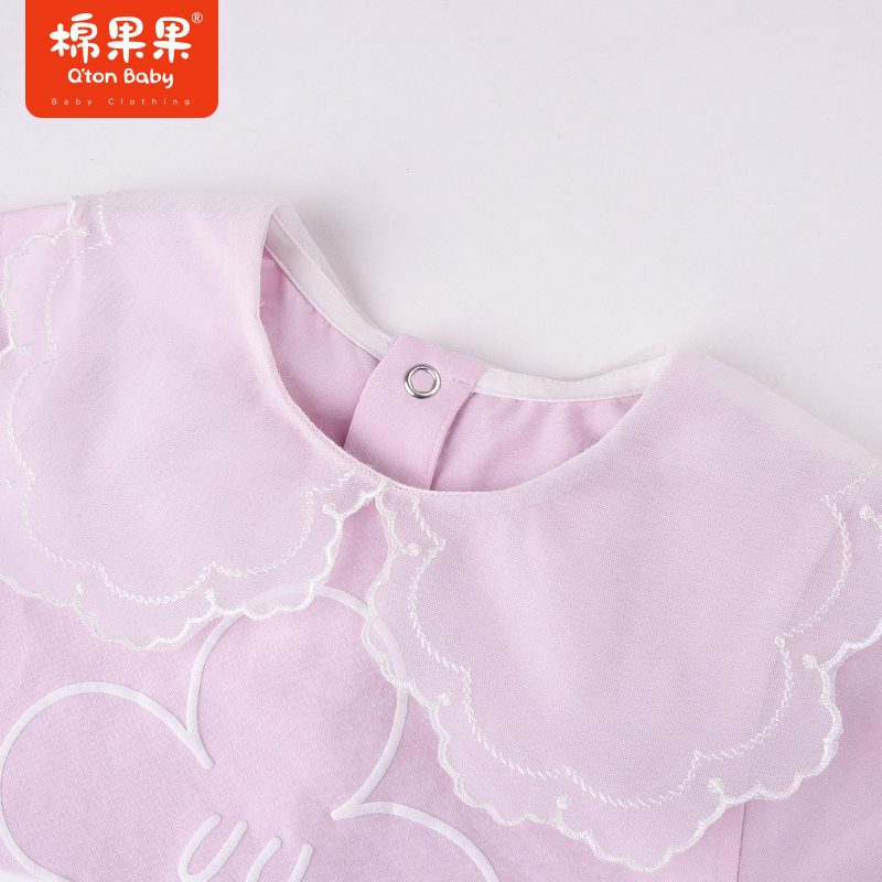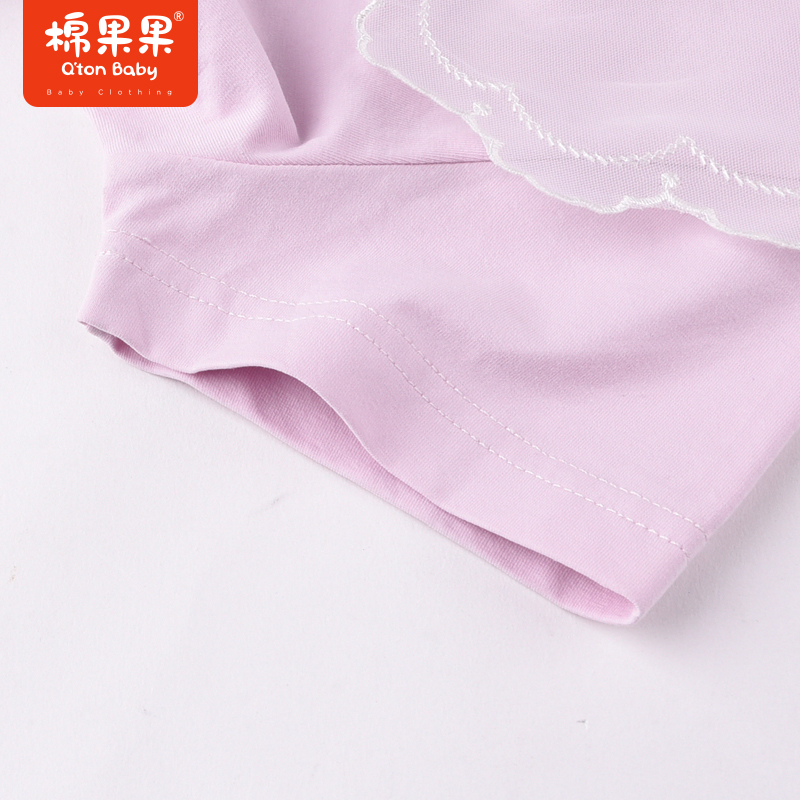 棉果果夏季女童纯棉花边翻领短袖T恤气质M222140222291
