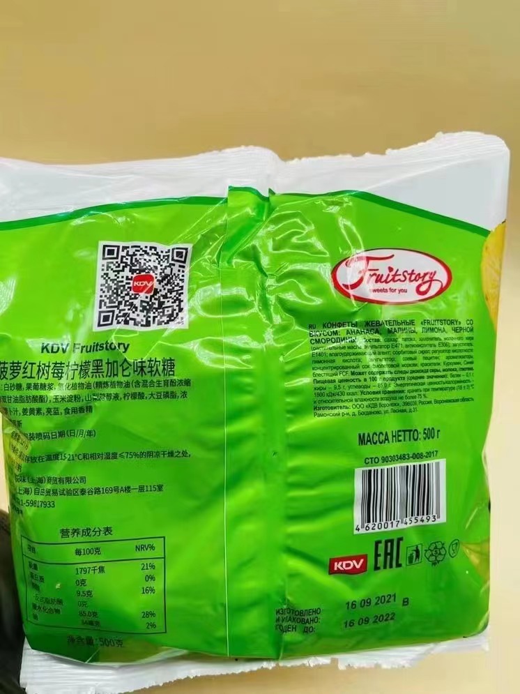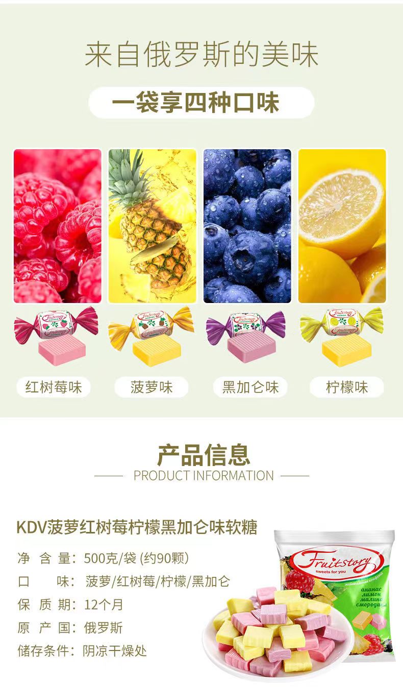 【中欧班列精选】俄罗斯KDV巧克力威化糖水果软糖500g/袋 正品保证