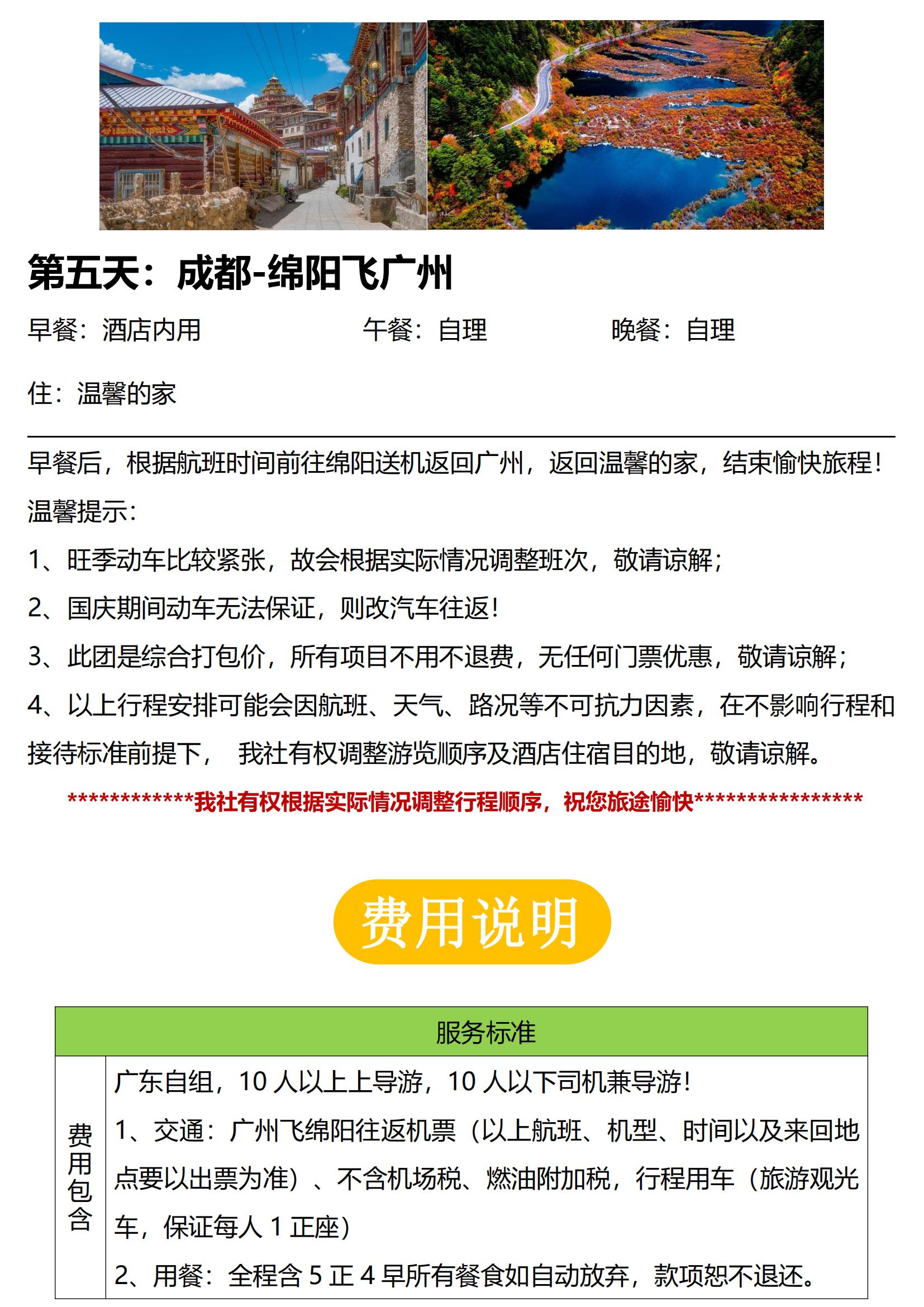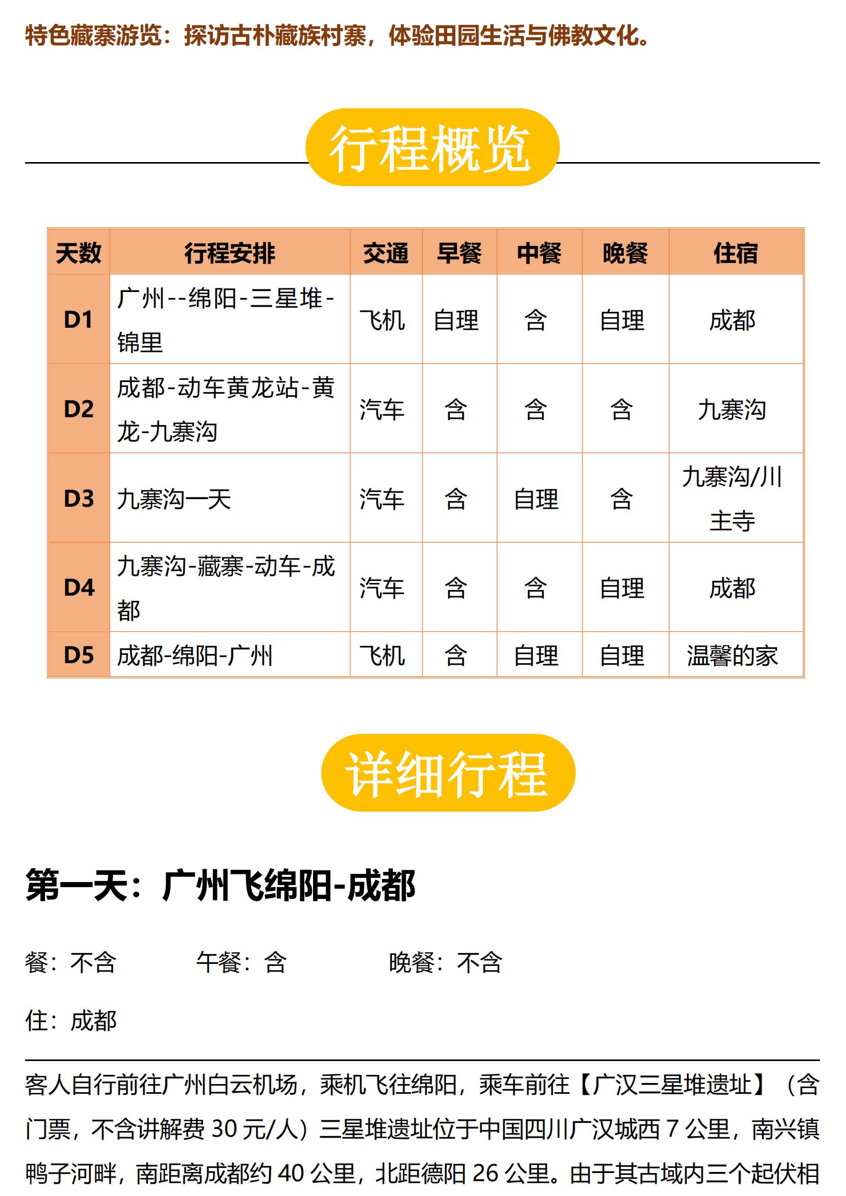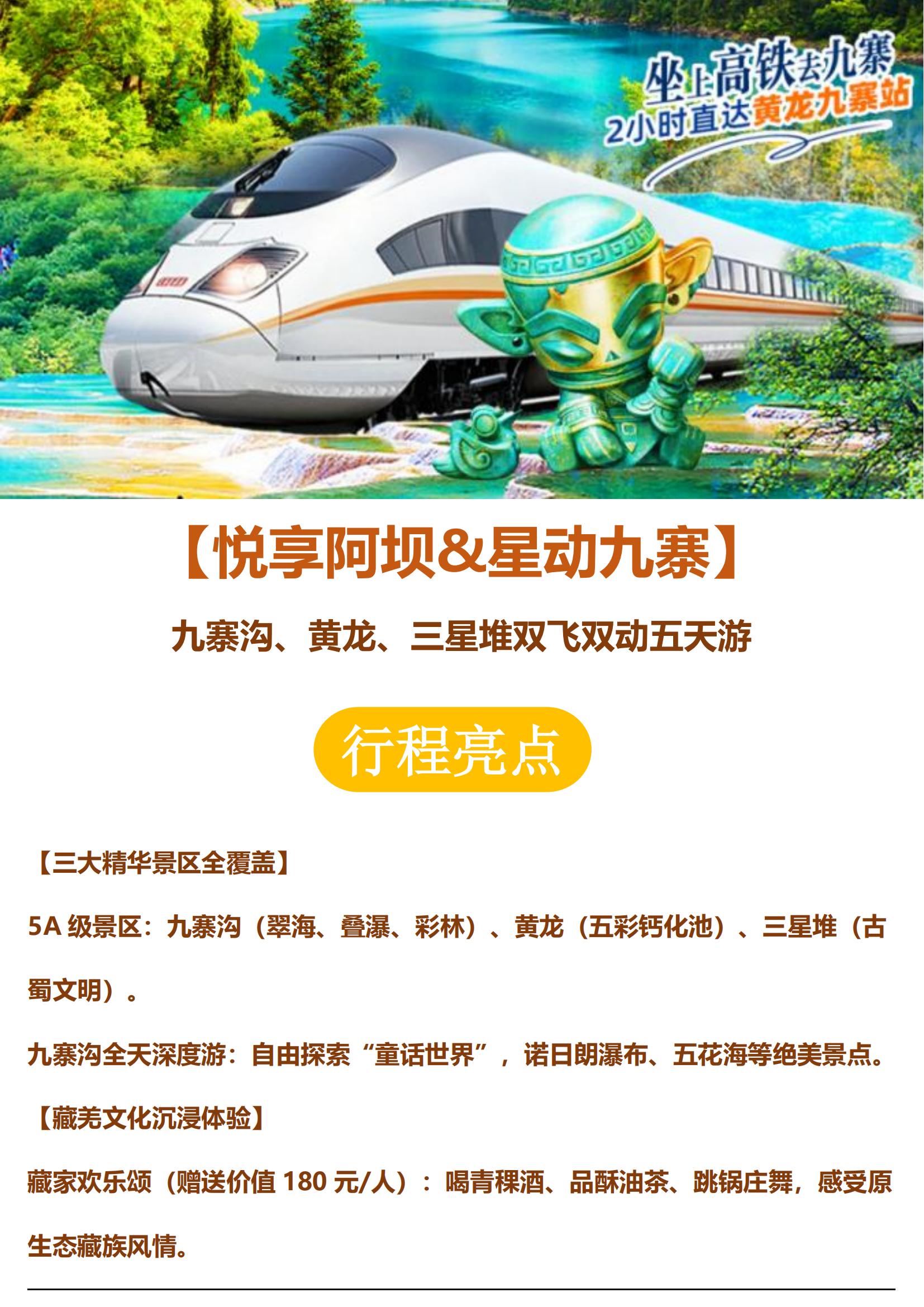 【秘境九寨线】九寨沟+三星堆+黄龙+大熊猫基地6天5晚