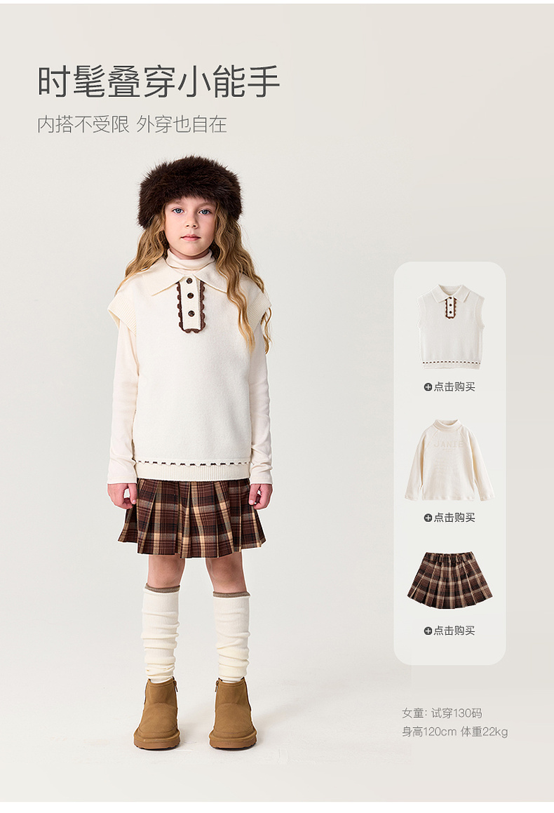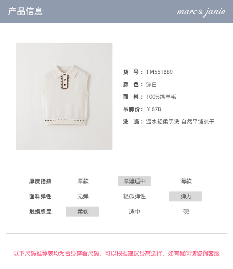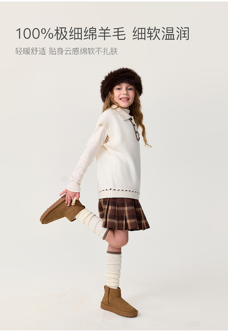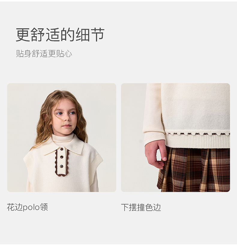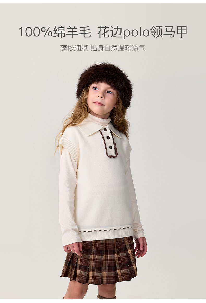 【100%绵羊毛】马克珍妮女童花边POLO领针织毛衣2025年冬装551889
