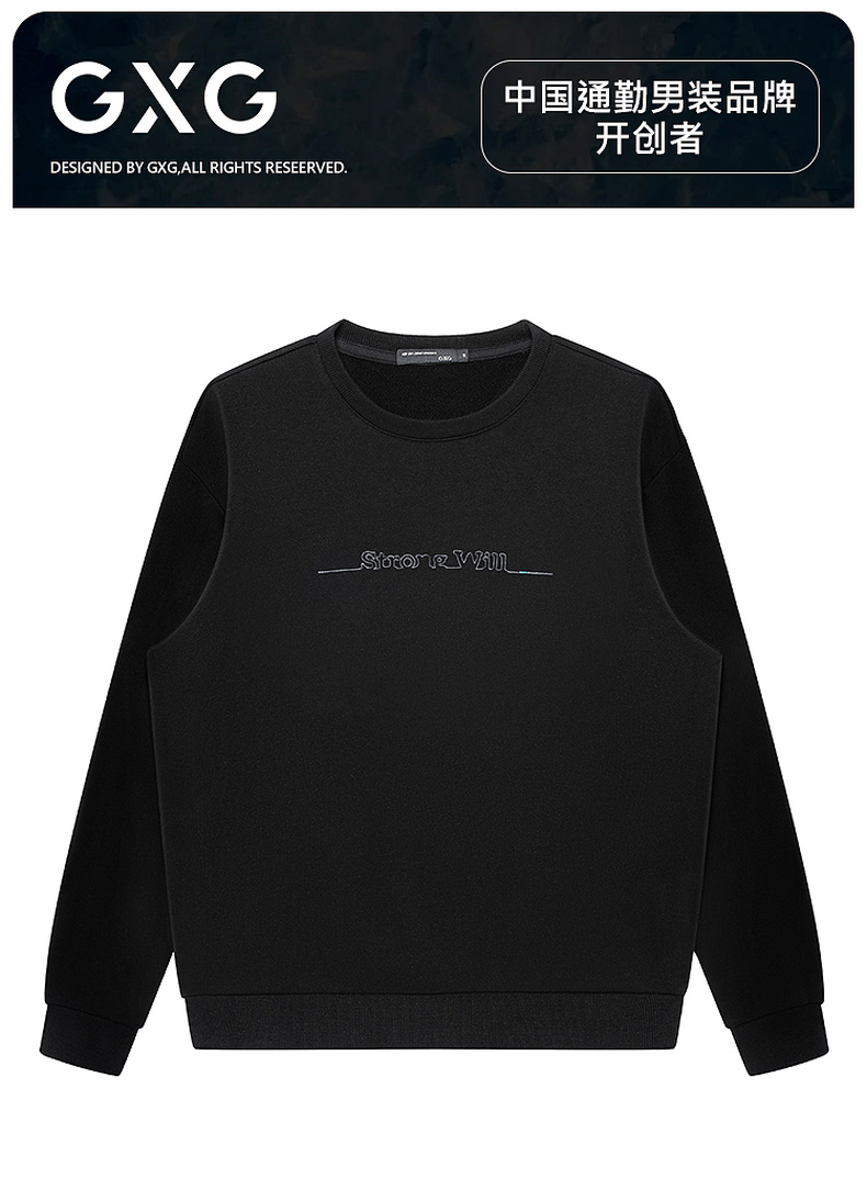 GXG男装【棉混纺】秋季时尚刺绣字母宽松休闲圆领男式长袖卫衣K&C