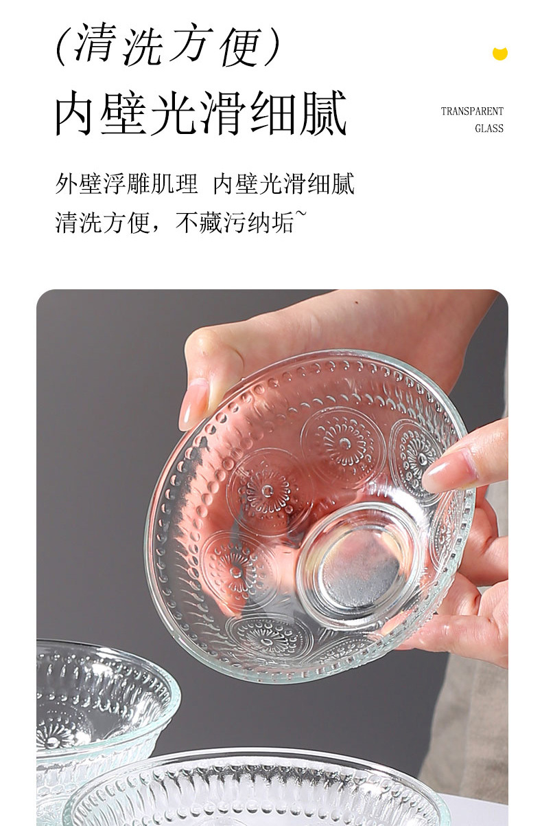 「19.9到手!六件套」精致太阳花碗六件套 北欧复古风ins高颜值碗杯居家日用碗沙拉碗玻璃碗餐饮用具