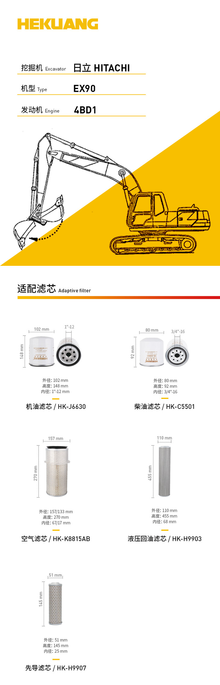 日立EX90(4BD1)挖掘机滤芯 机油柴油空气滤芯 液压油先导滤芯