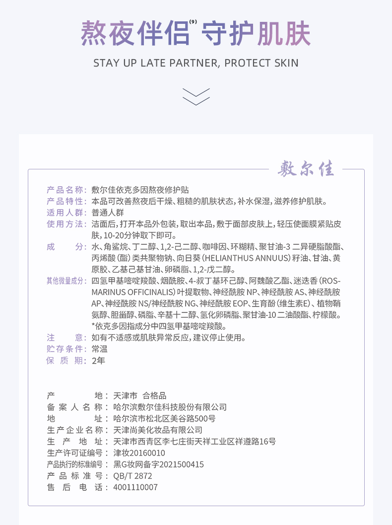 Voolga/敷尔佳 面膜依克多因熬夜修护贴5贴/盒6971899510304