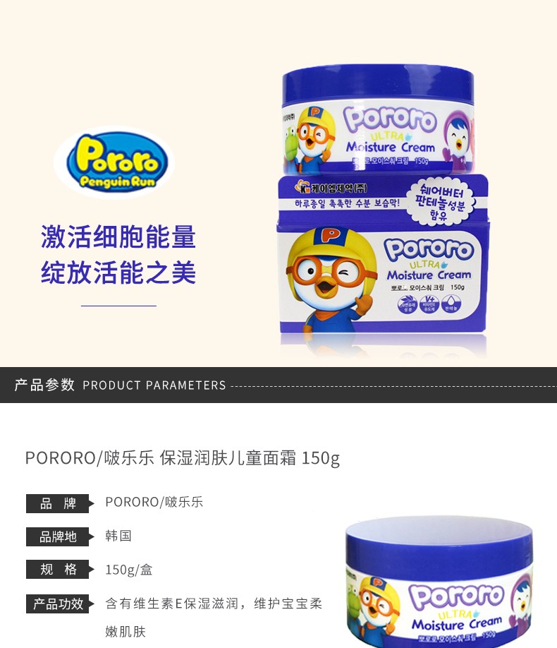 PORORO/啵乐乐 保湿润肤儿童面霜 150GJPY带授权招加盟代理