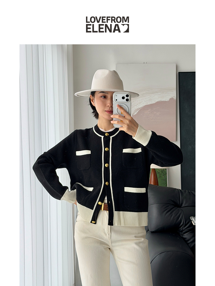 「工厂团购」羊毛羊绒混纺 复古小香风显瘦针织开衫T1633