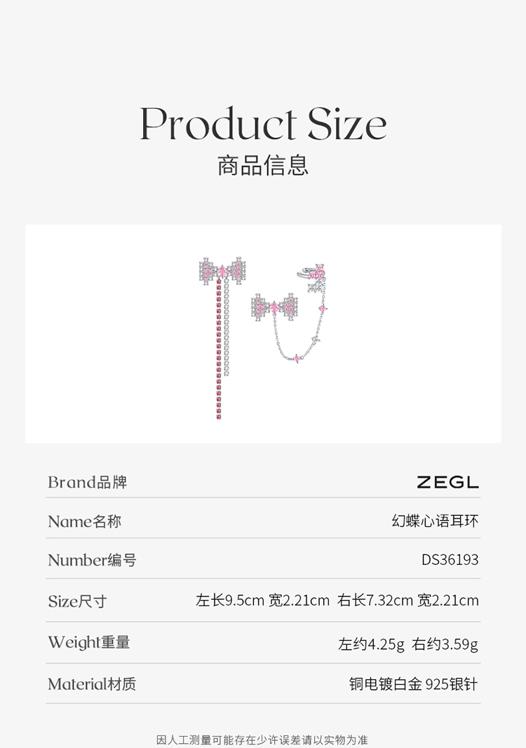 ZEGL设计师幻蝶心语系列蝴蝶结流苏耳环女小众设计感高级耳钉耳饰