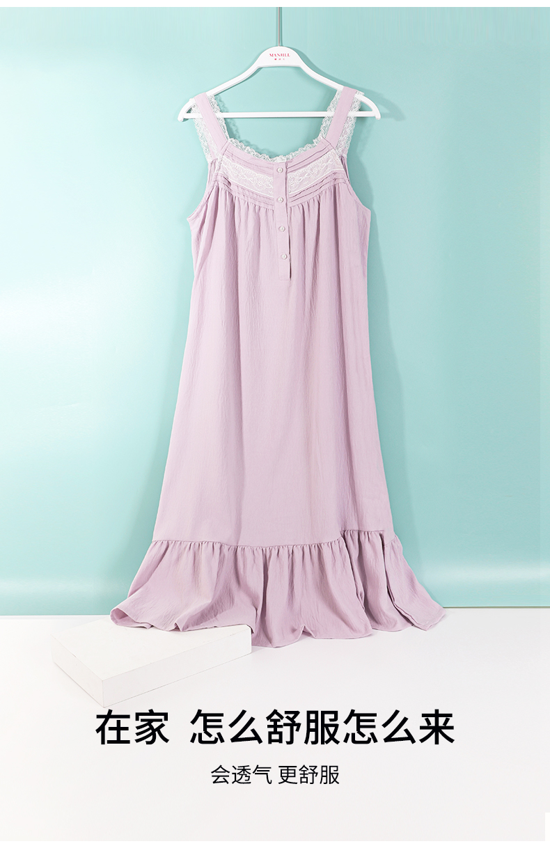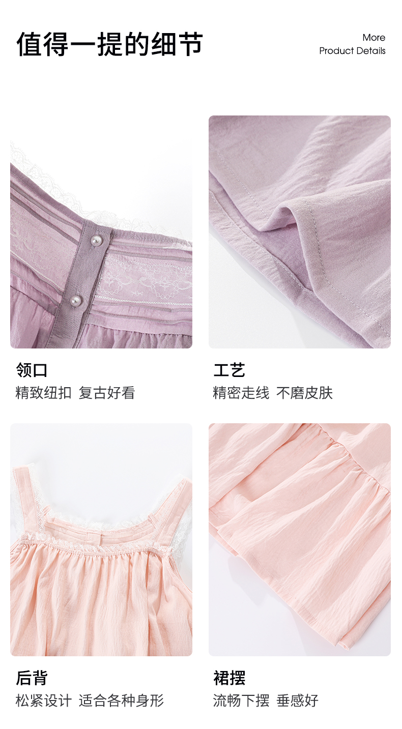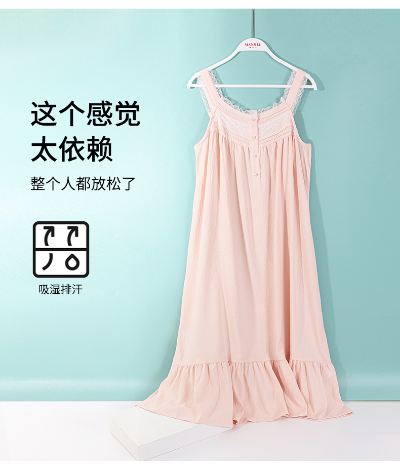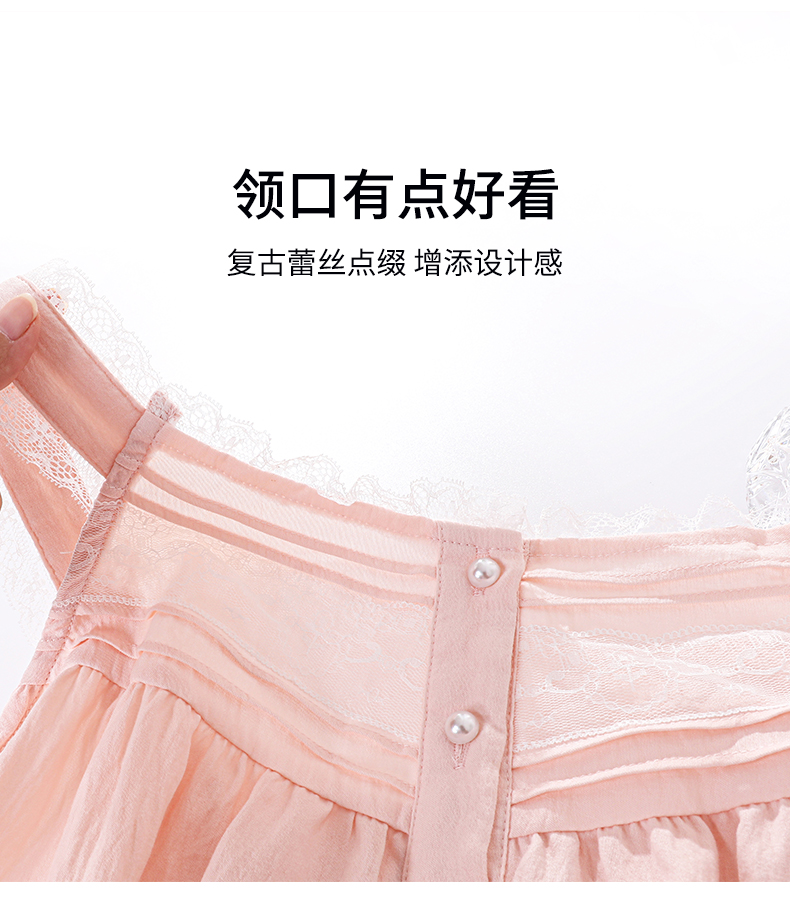 【商场同款】熳洁儿 夏季凉爽人棉吊带裙精致花边甜美公主裙家居服 23203001