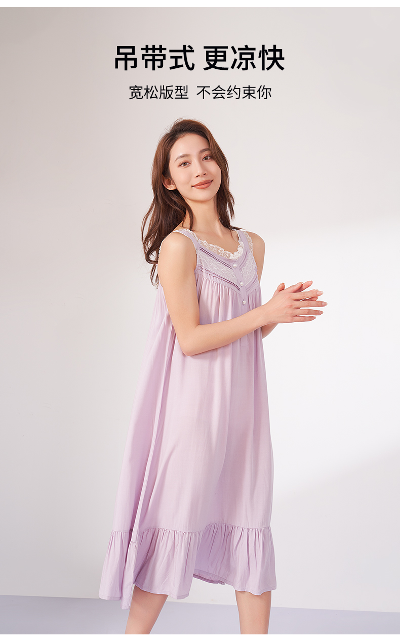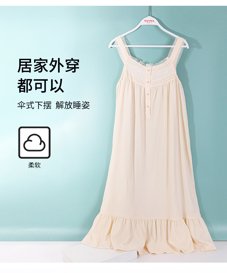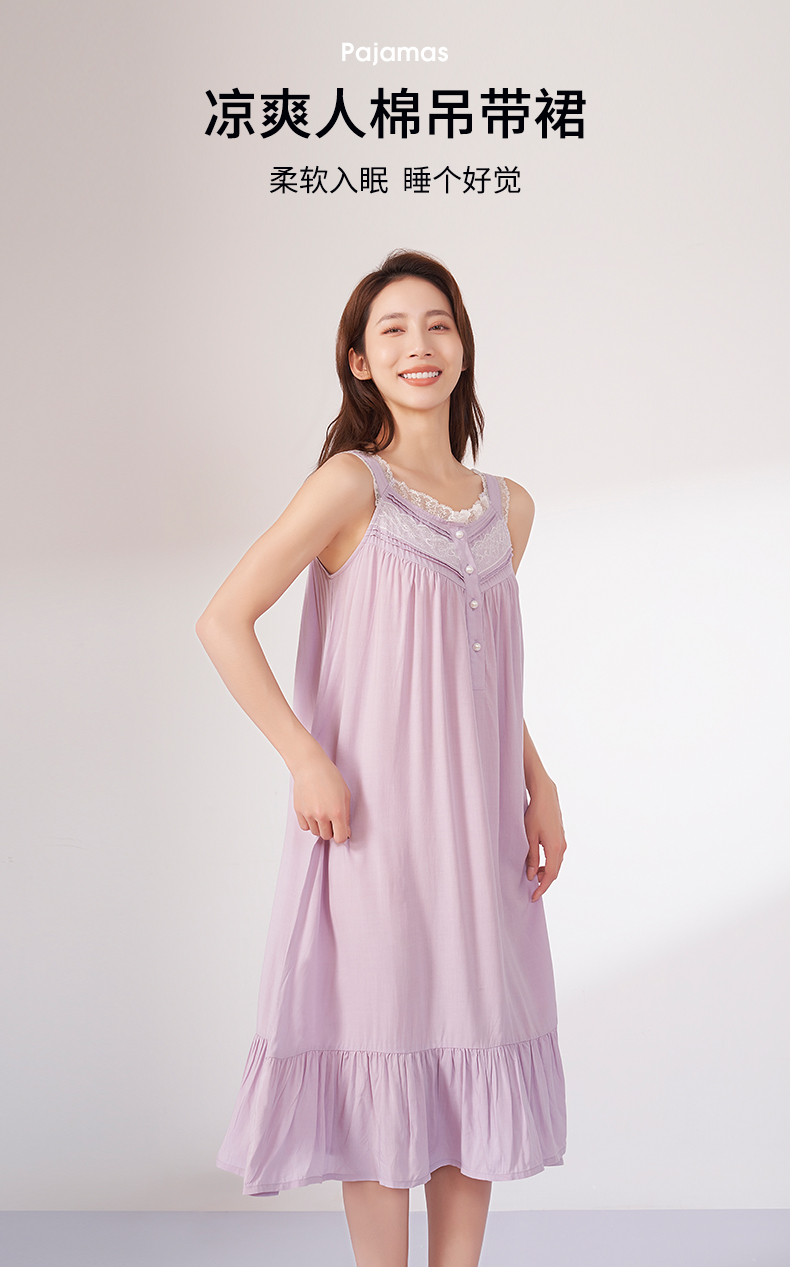 【商场同款】熳洁儿 夏季凉爽人棉吊带裙精致花边甜美公主裙家居服 23203001