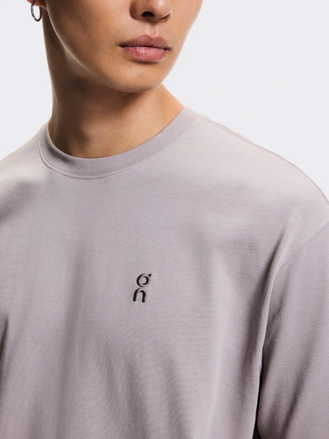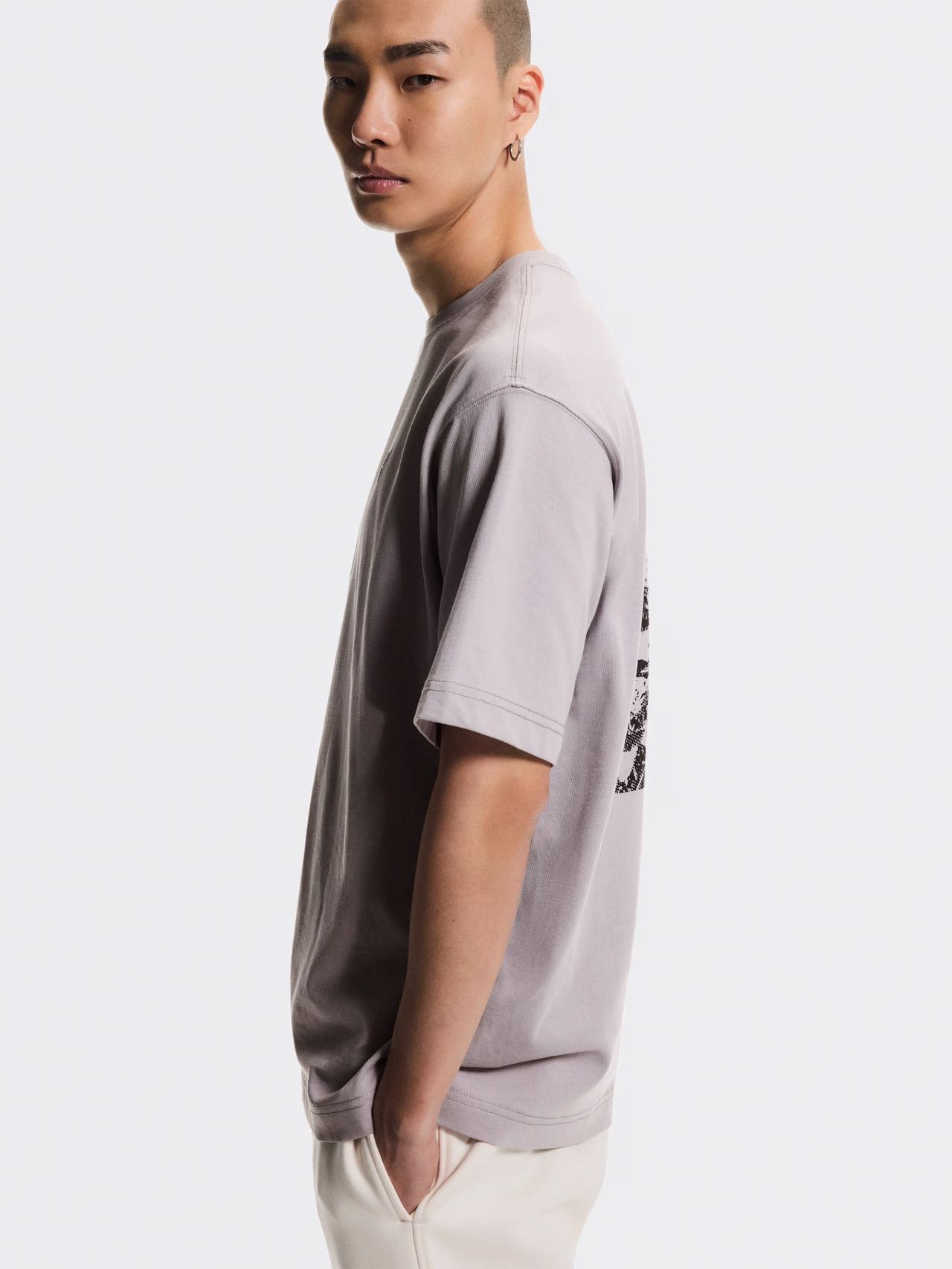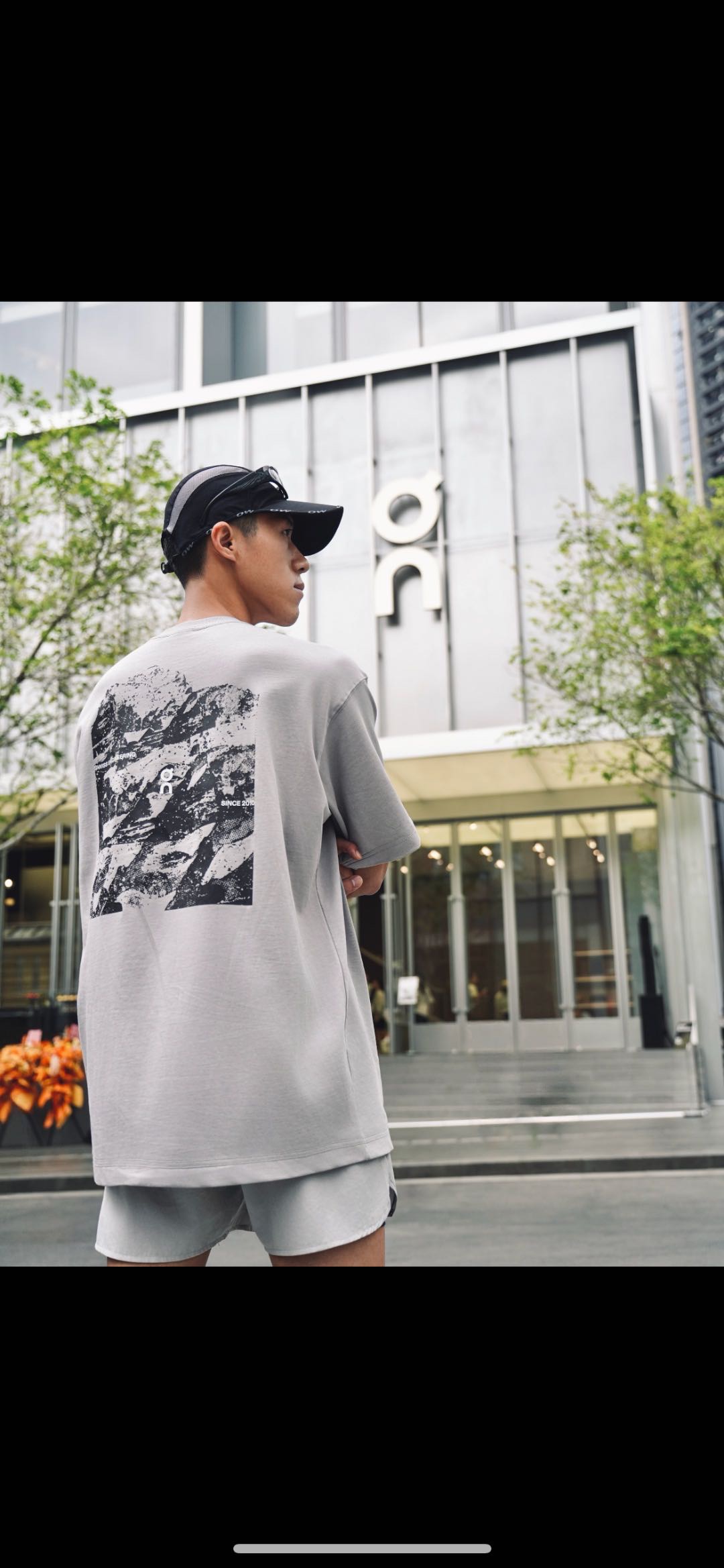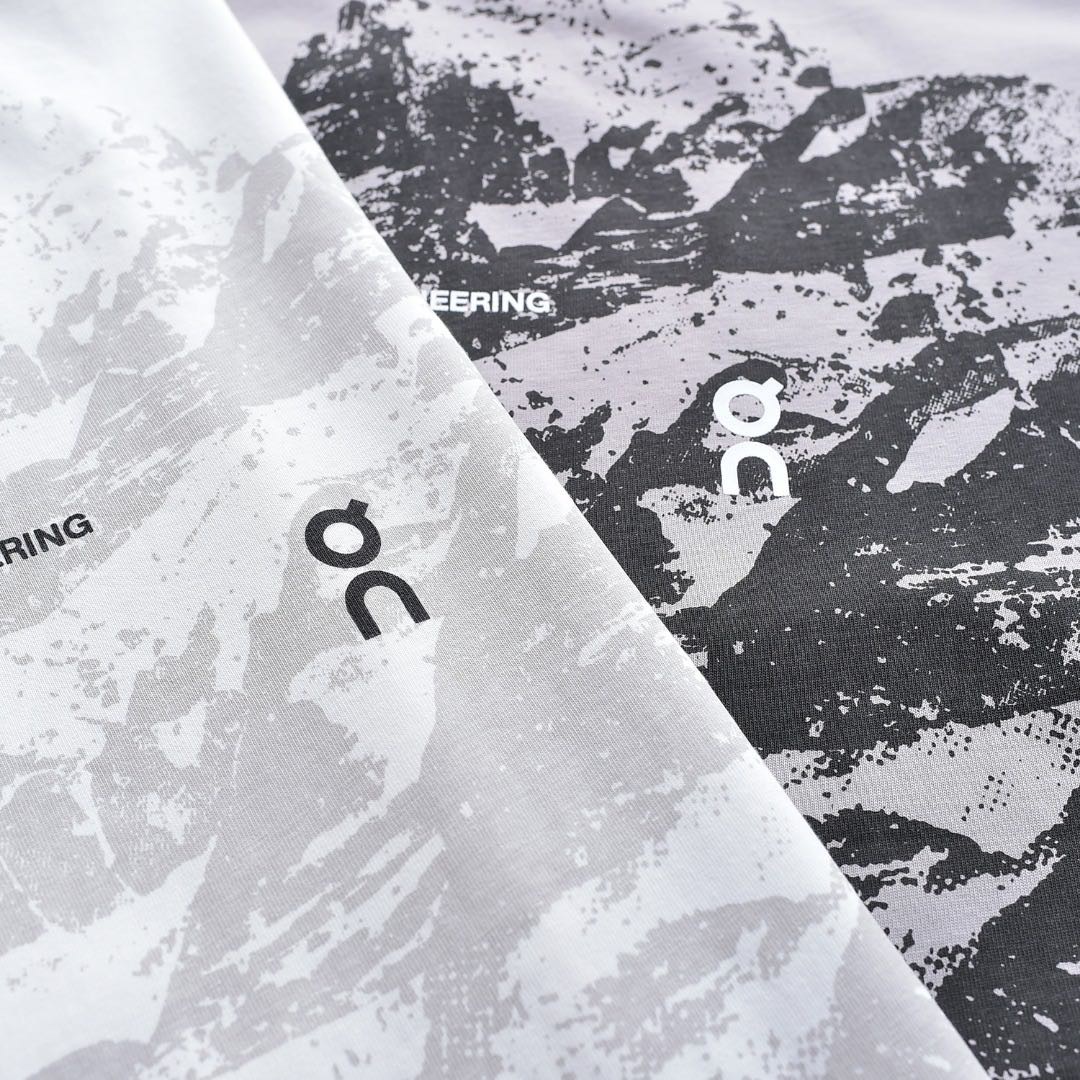 男士日常休闲日常圆领短袖T恤 棉质面料舒适 胸前刺绣小Logo,背面山系印花图案。