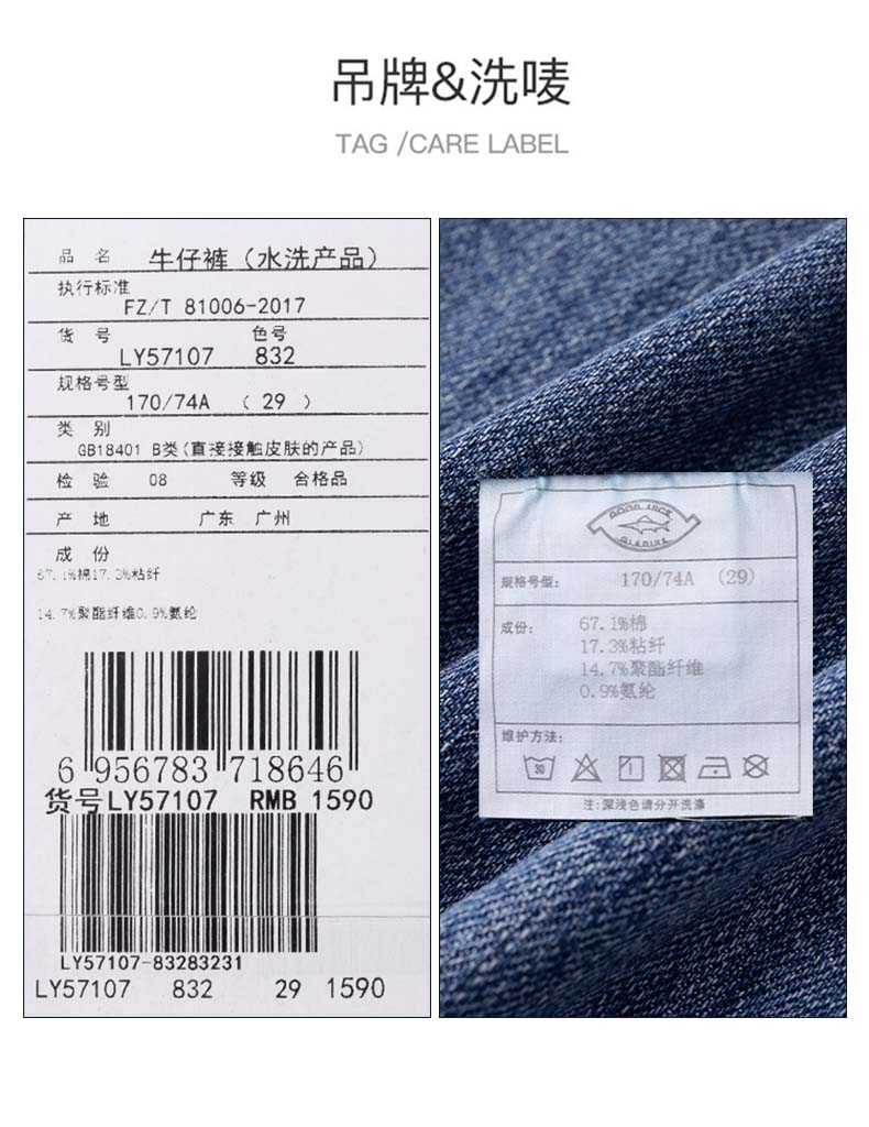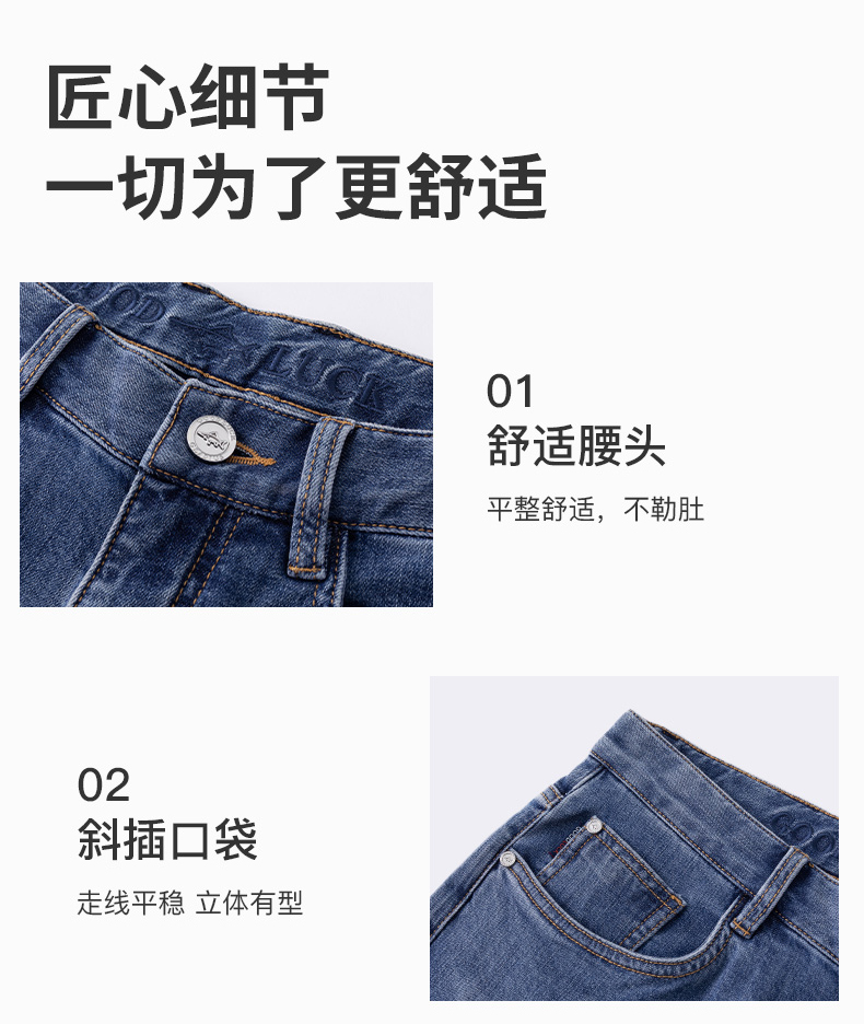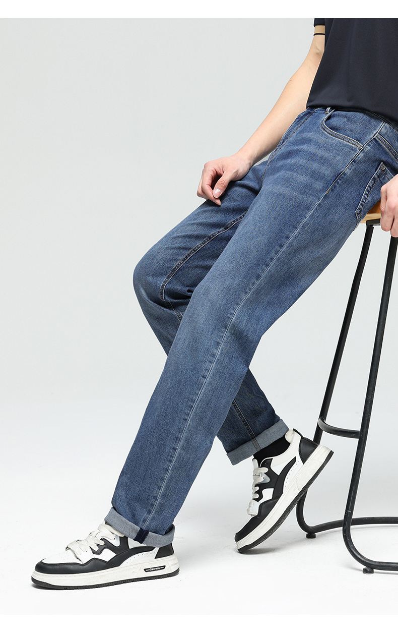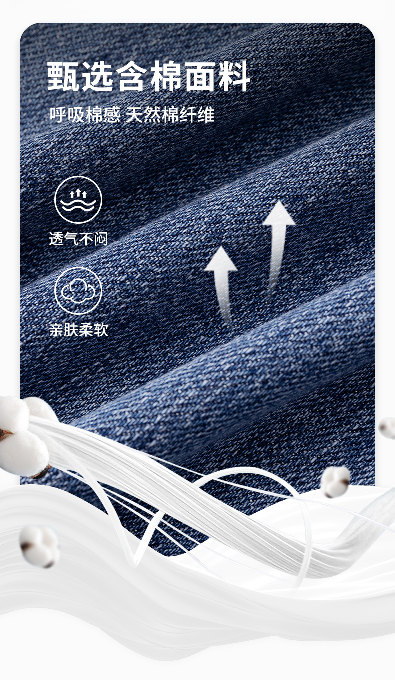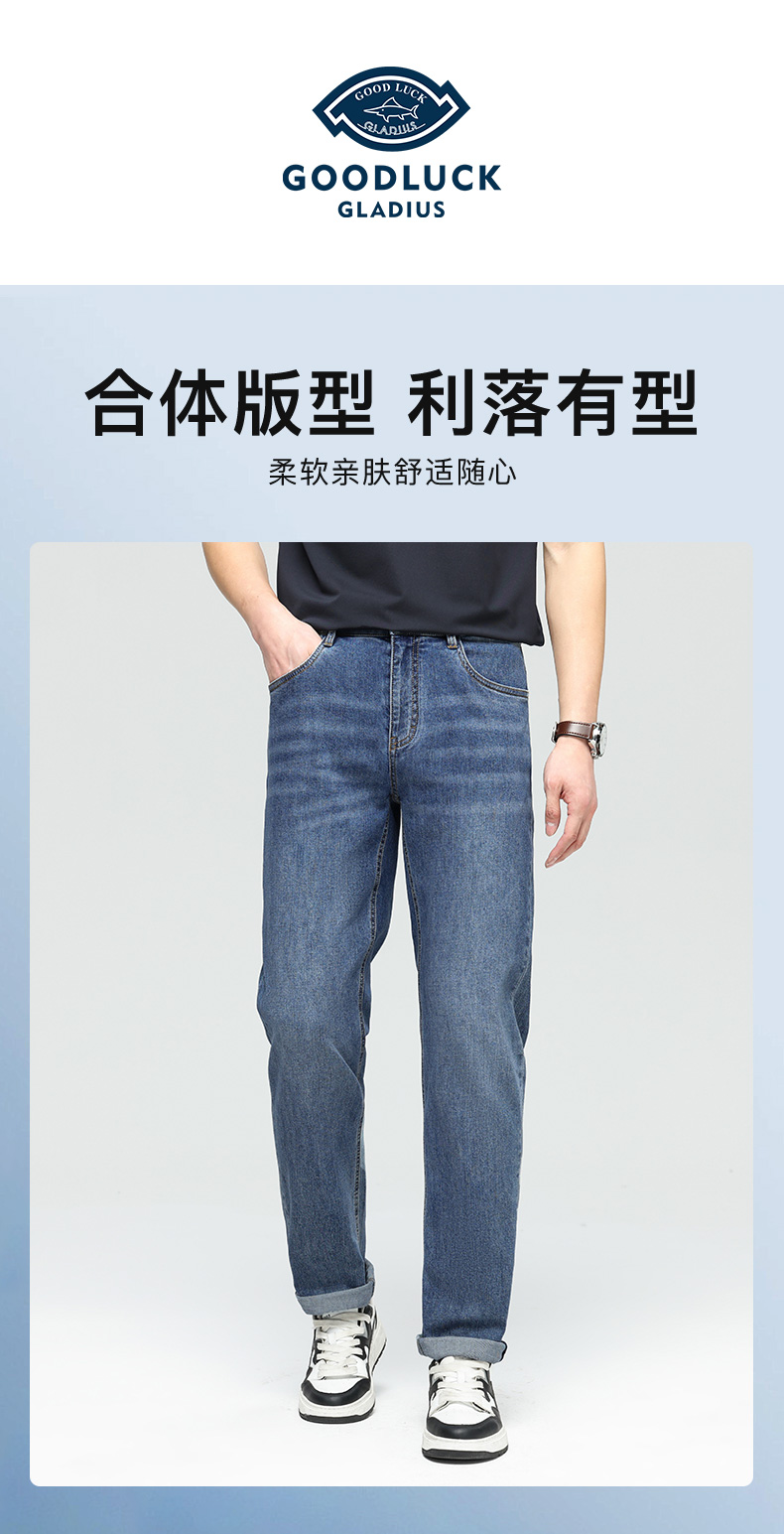 德鲨鲨鱼男装棉质直筒牛仔裤2026春夏新品弹力休闲裤子男舒适长裤