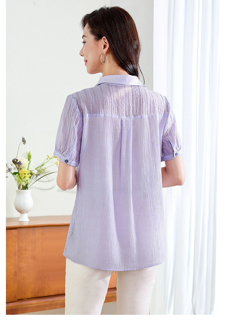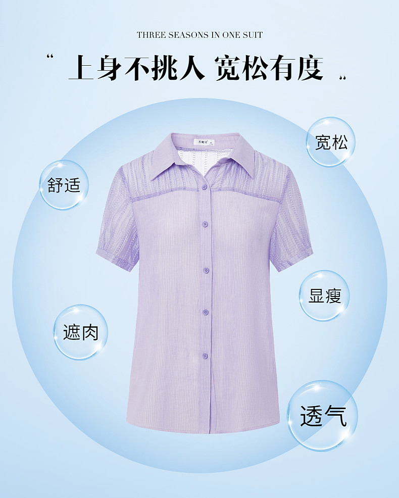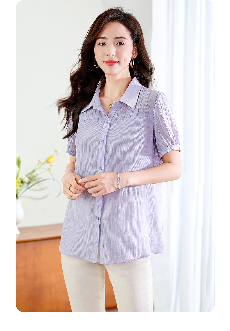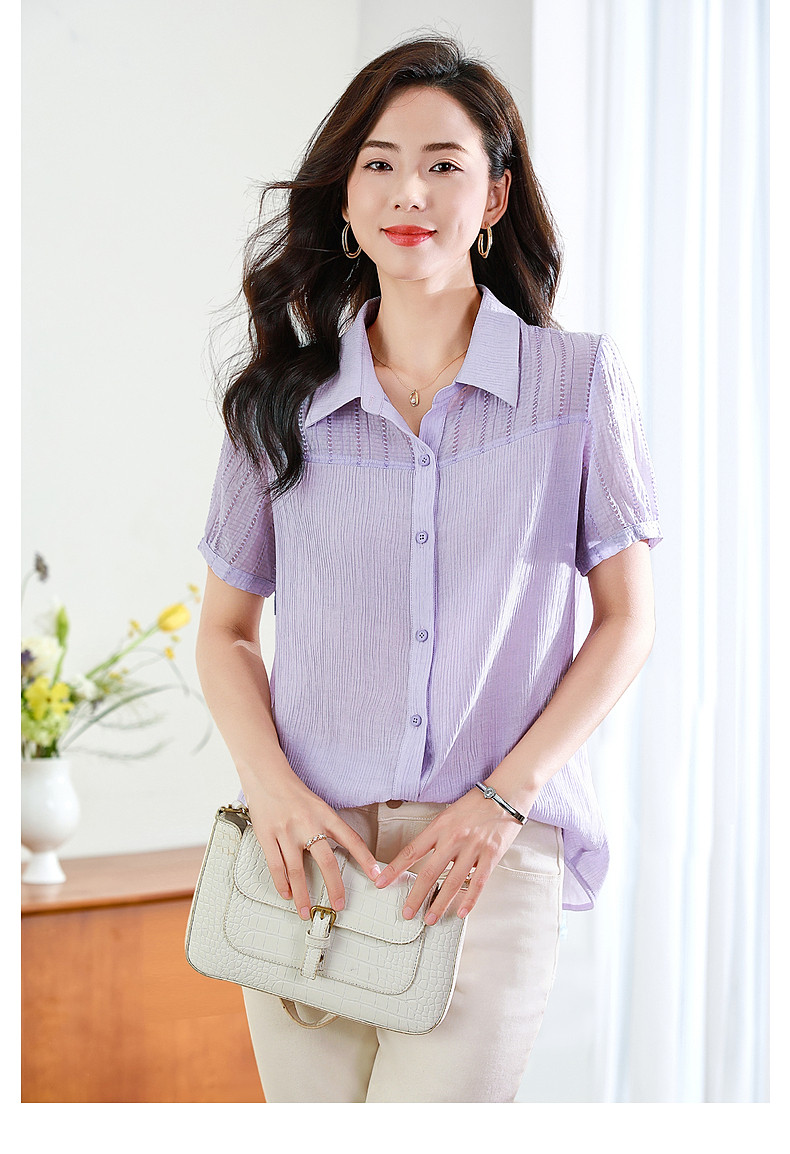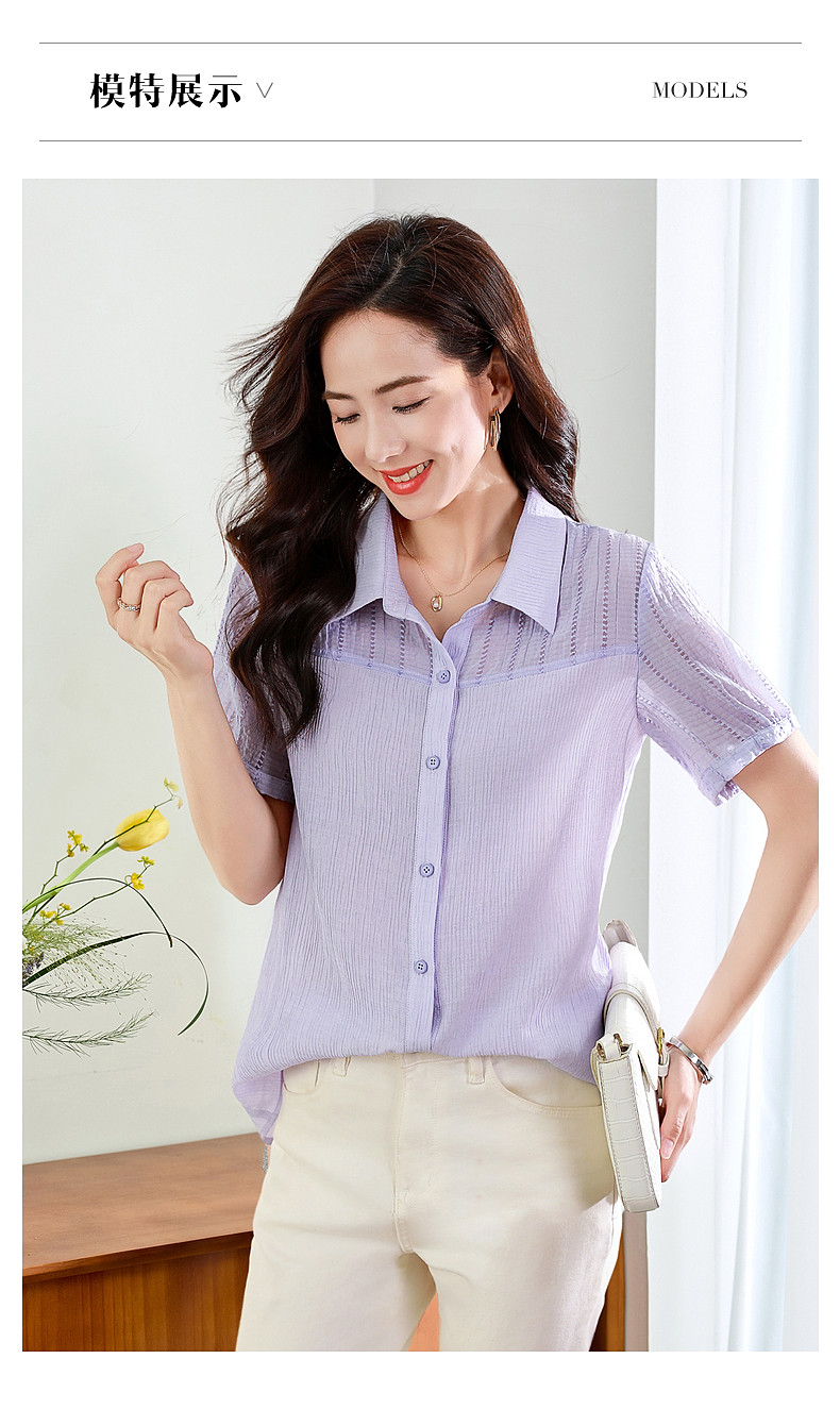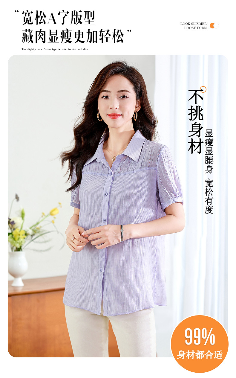 天丝女士短袖衬衫夏季薄款2025新款休闲大码宽松遮肉雪纺衬衣减龄