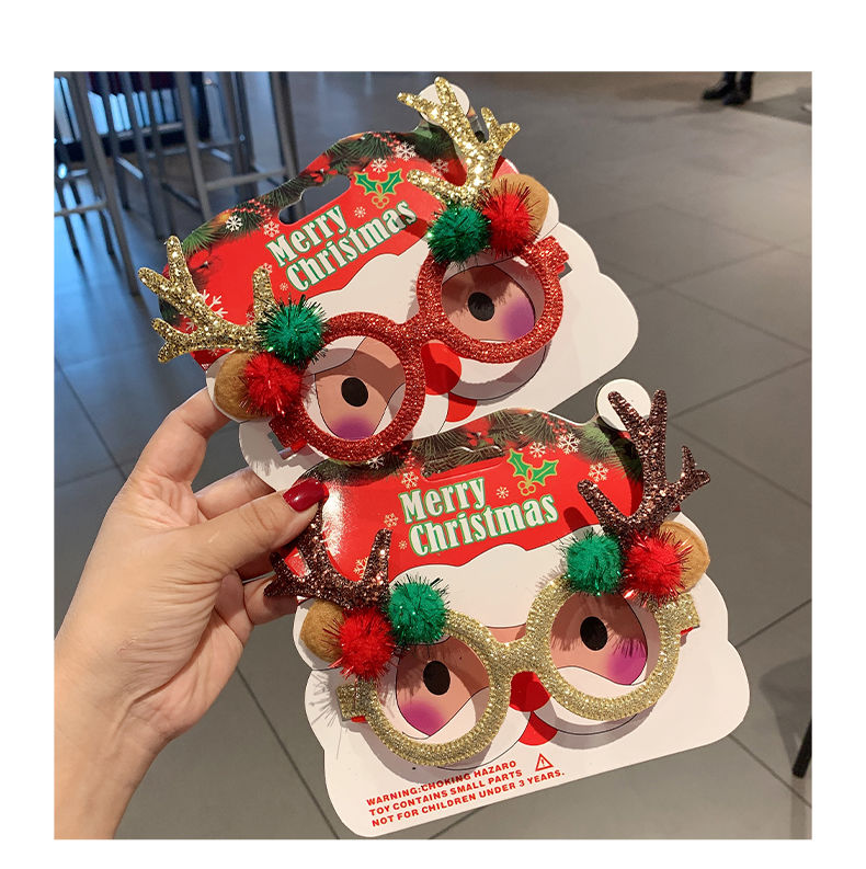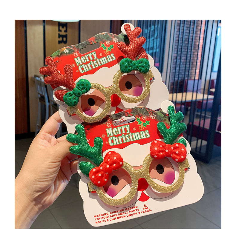 「圣诞创意礼物 两副装」圣诞节眼镜框女麋鹿搞怪蹦迪镜框情侣圣诞学生装扮礼物派对装饰镜