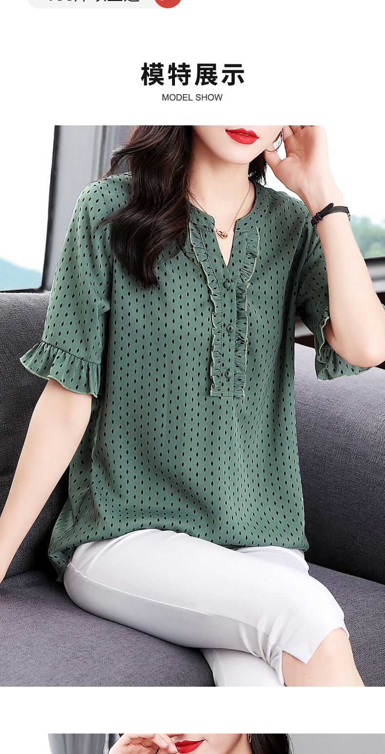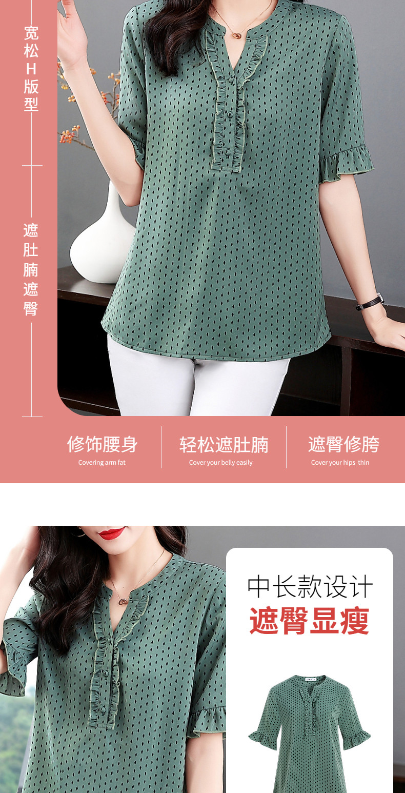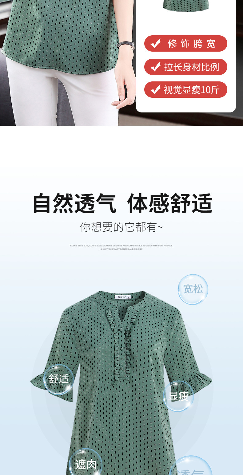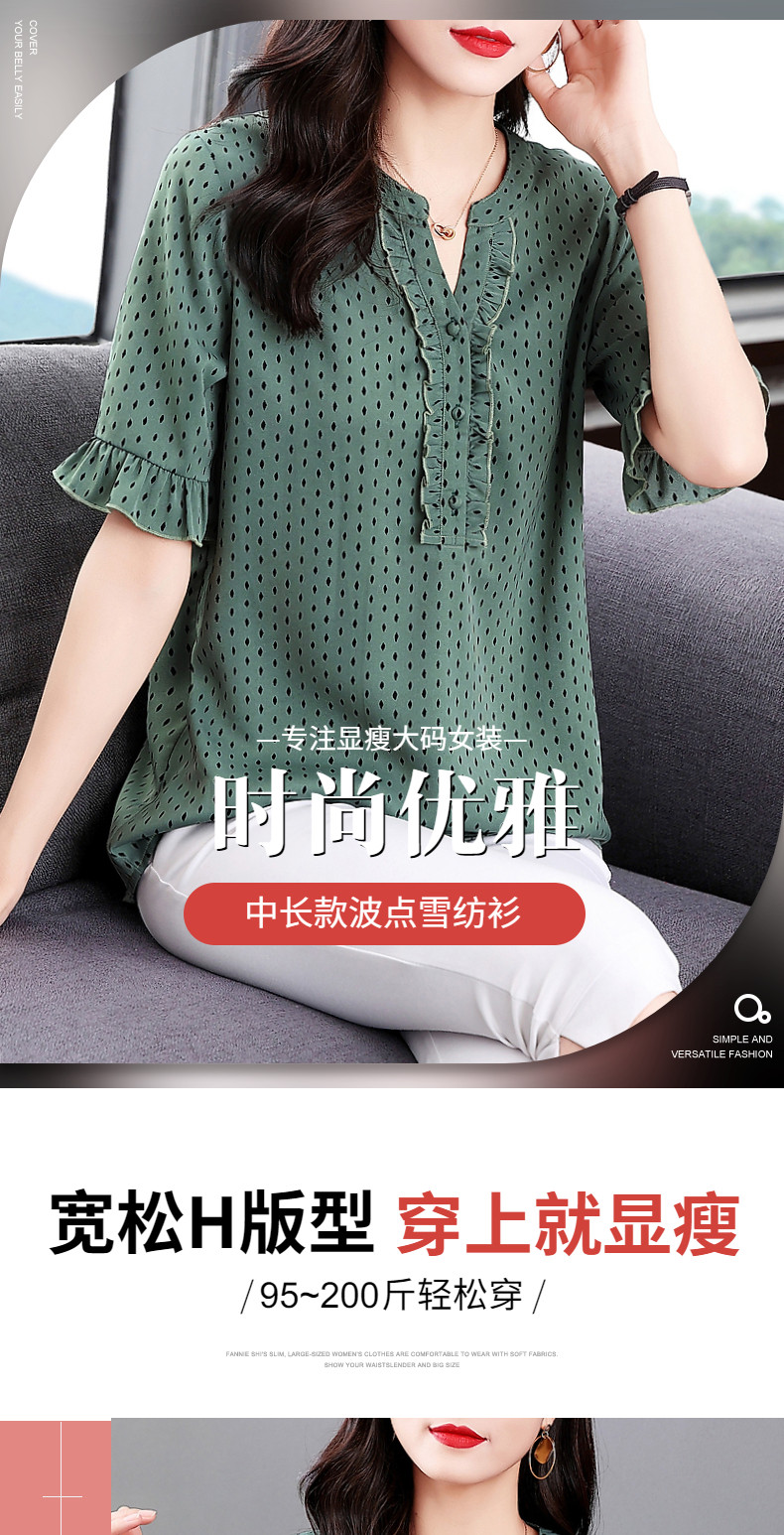 大码波点短袖雪纺衬衫女2026新款妈妈时尚漂亮小衫胖mm遮肚子上衣