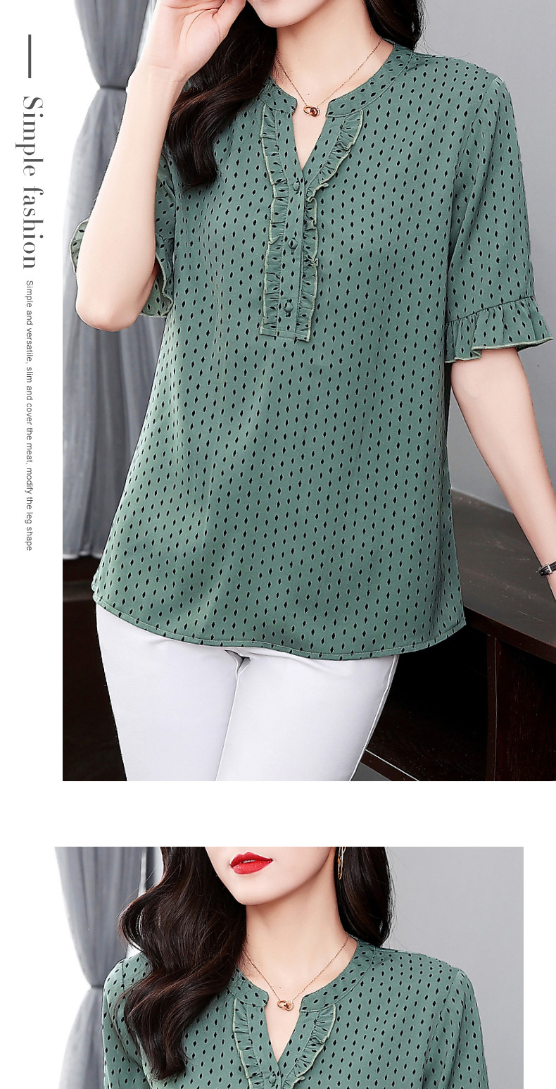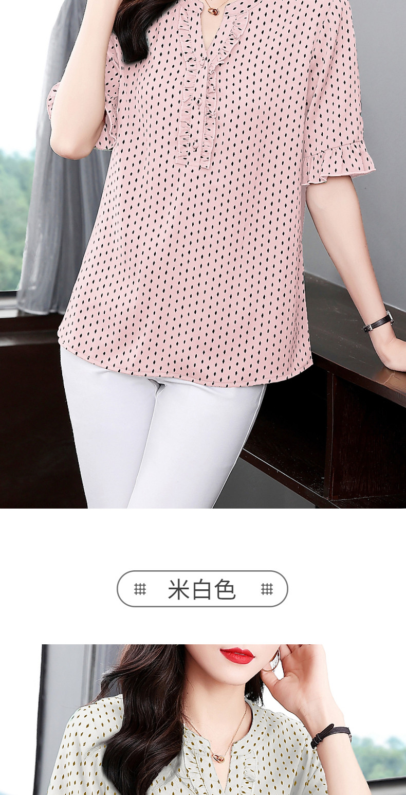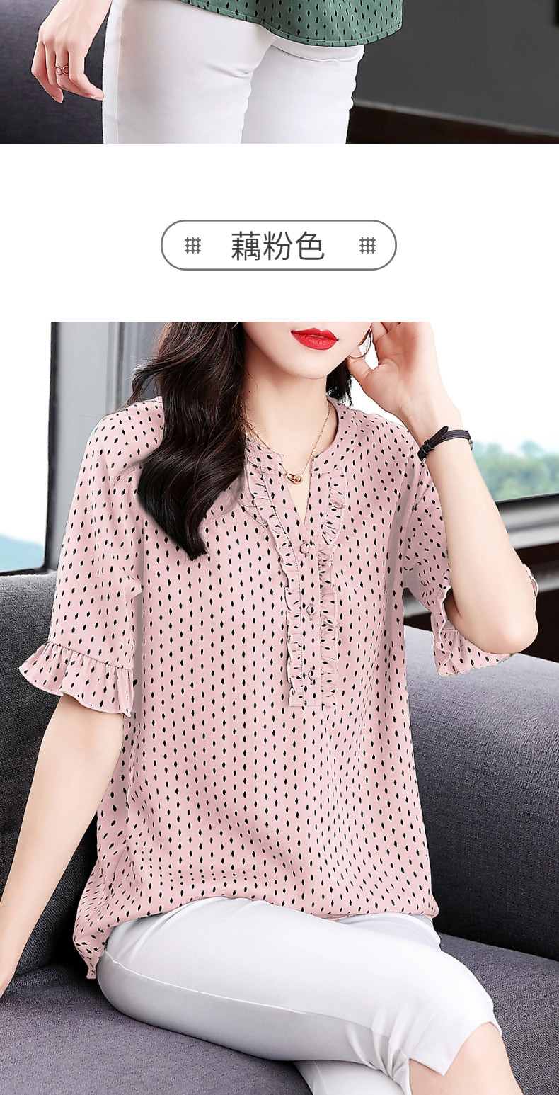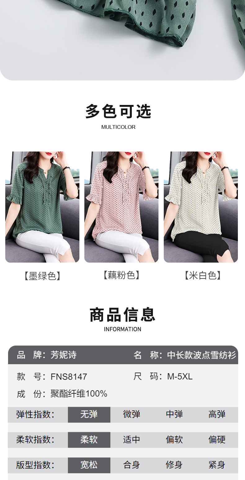 大码波点短袖雪纺衬衫女2026新款妈妈时尚漂亮小衫胖mm遮肚子上衣