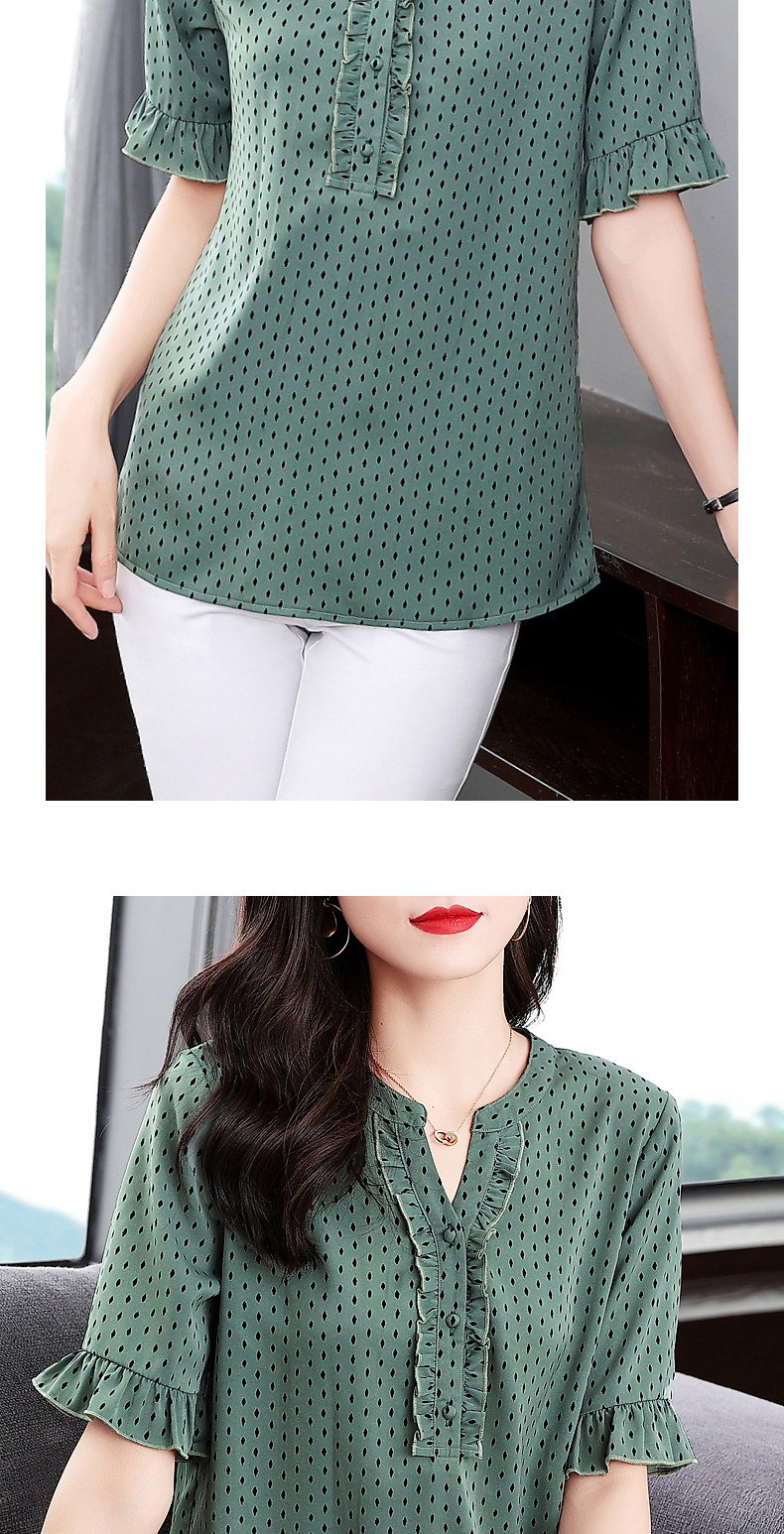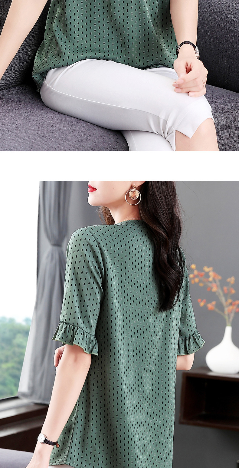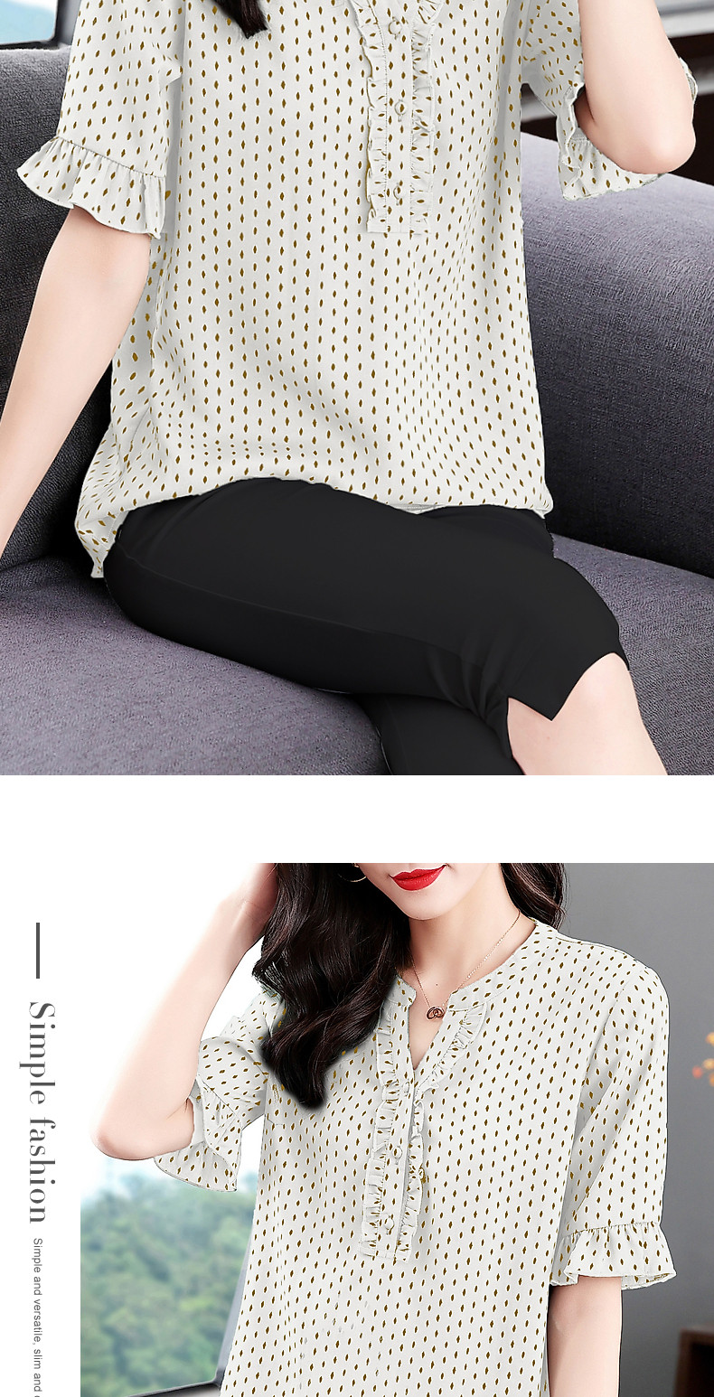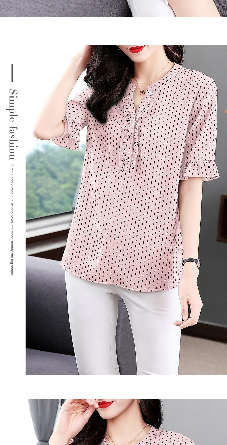 大码波点短袖雪纺衬衫女2026新款妈妈时尚漂亮小衫胖mm遮肚子上衣