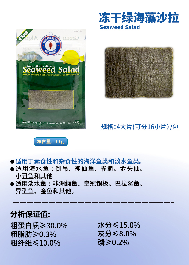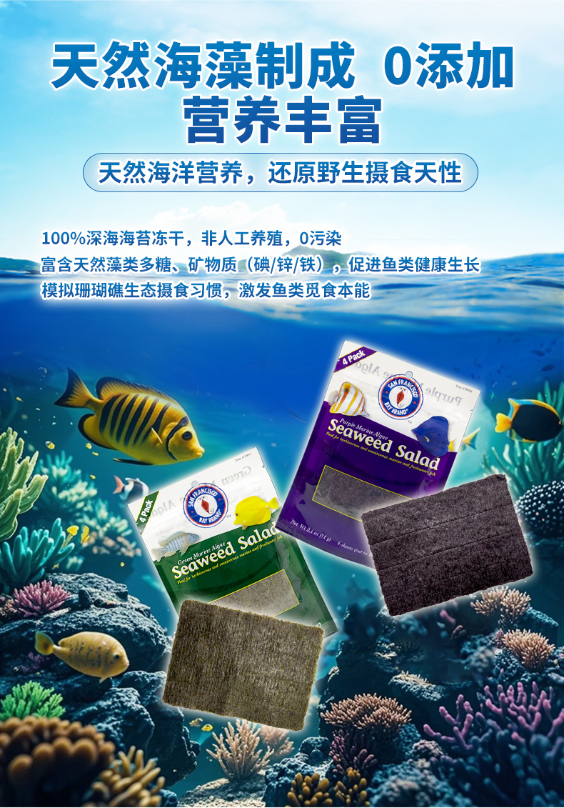 美国圣弗朗SFBB鱼粮海水鱼紫菜海藻沙拉饲料海洋牌鱼食创始人专业海藻