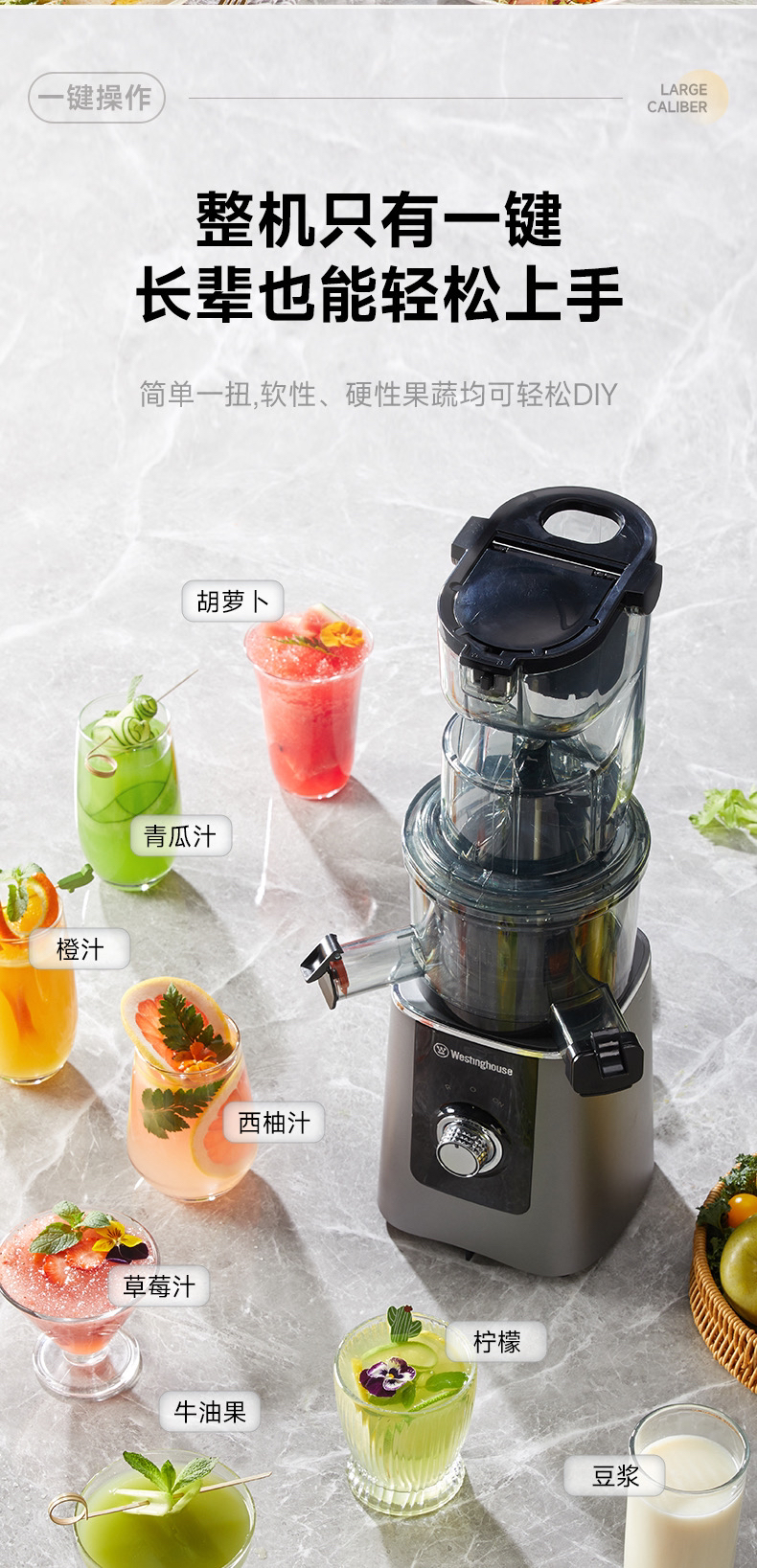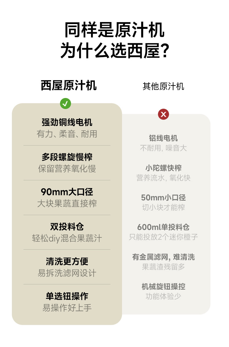 西屋原汁机大口径低速压榨家用榨汁机全自动果蔬多功能榨汁机