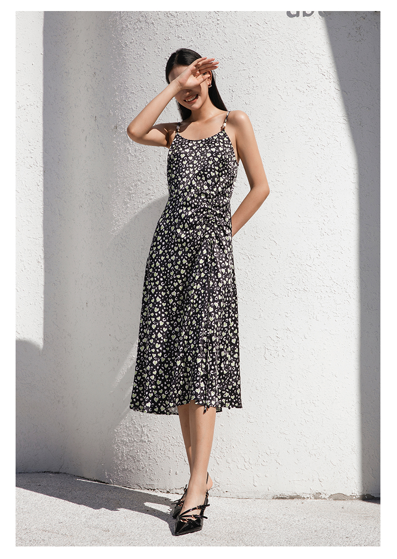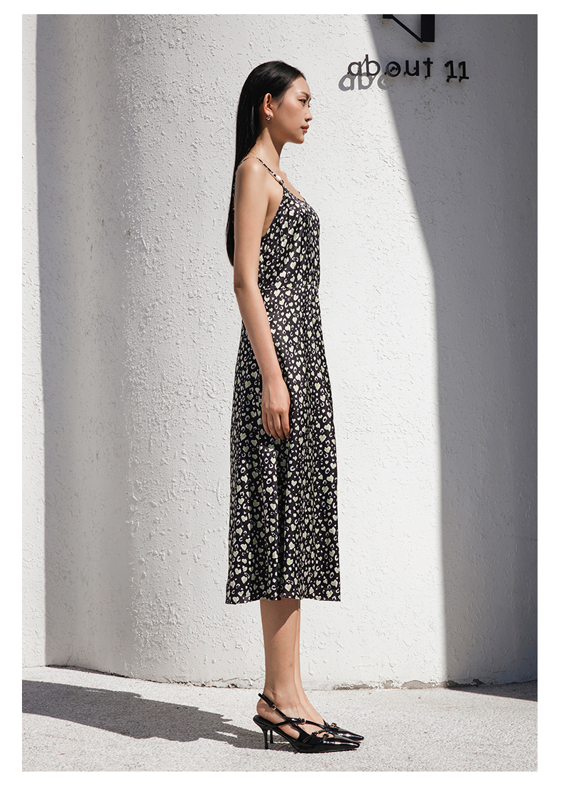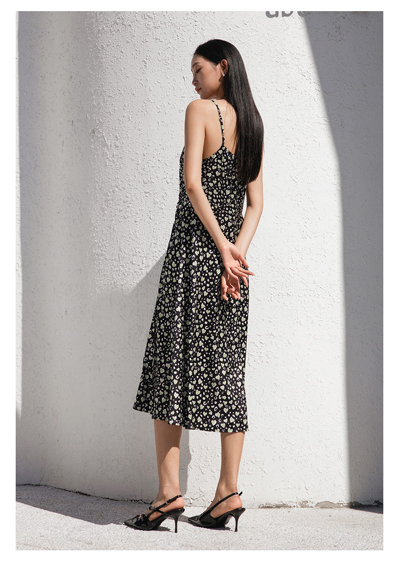 oldcolour夏季新款气质减龄中长款碎花吊带连衣裙女GP31104003