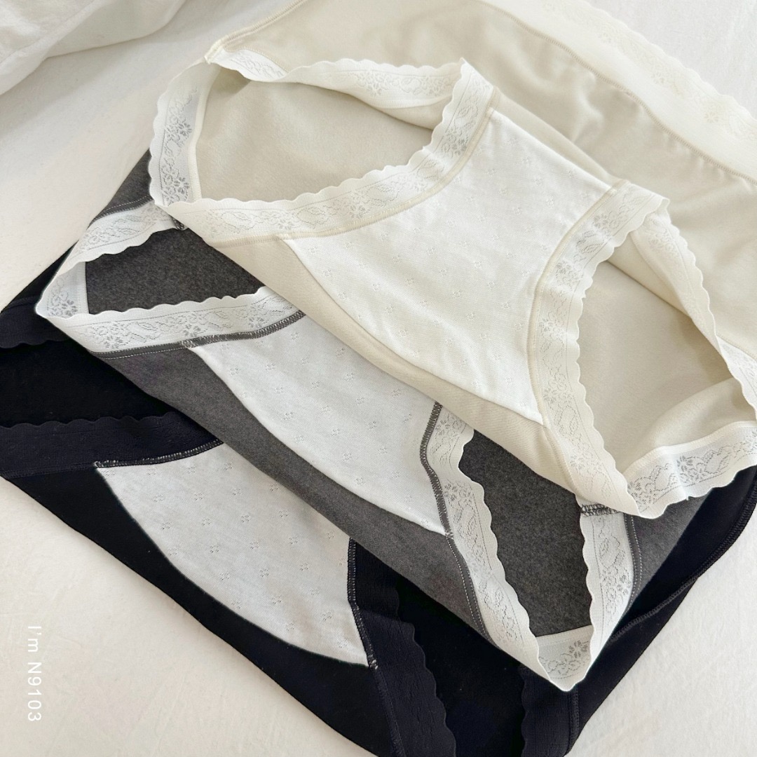 老米优品🎈3-5天发!3条一组!糯叽叽羊绒感!《磨毛高弹透气蕾丝花边内裤》女款小内,秋日宝藏~ NK251003A
