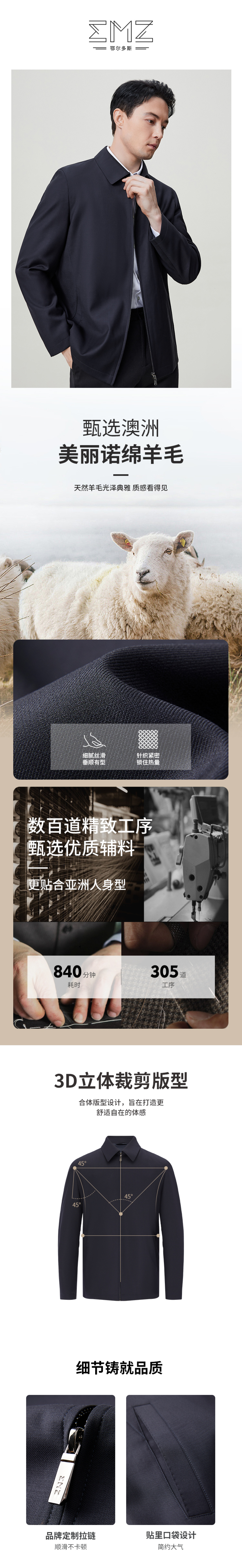 EMZ鄂尔多斯春季新款商务羊毛夹克男士高级翻领正装上衣外套 9D7880209