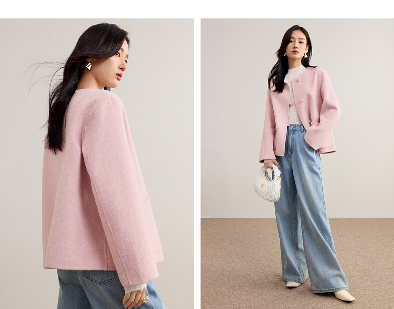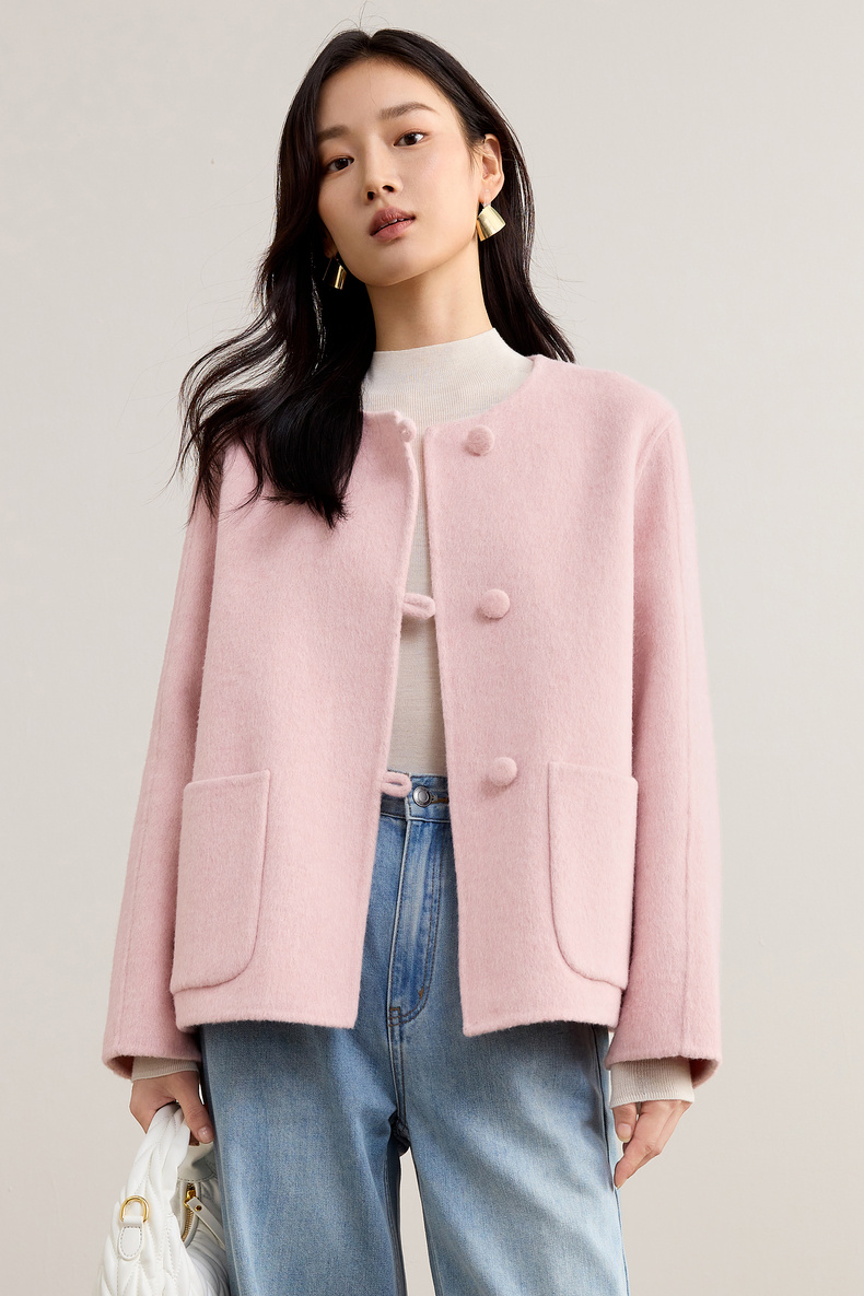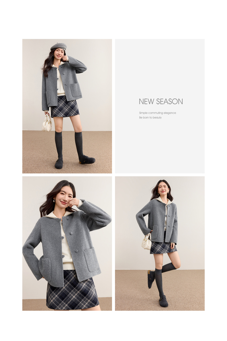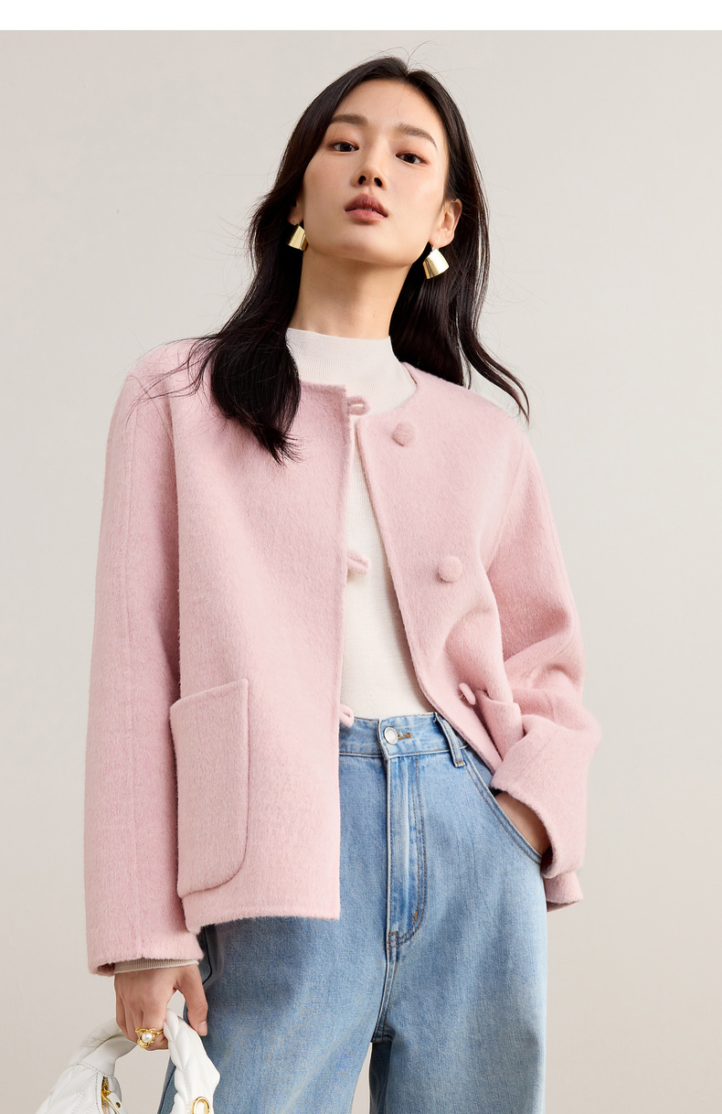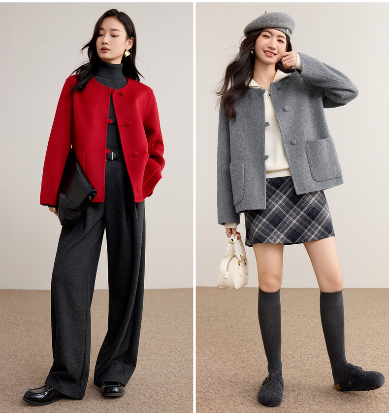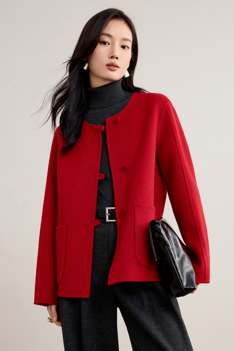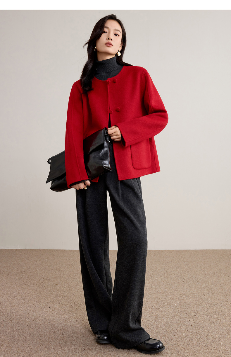【内购】【绵羊毛】多色可选轻奢名媛风通勤圆领包扣保暖厚双面呢直筒外套-W54OG8758