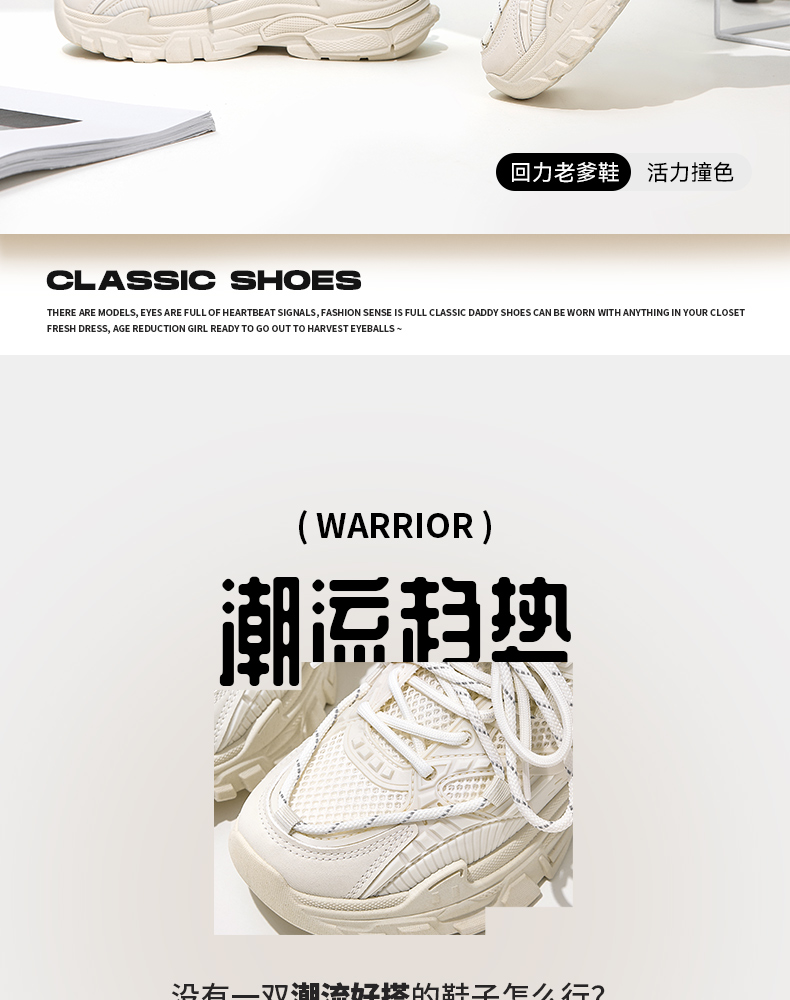 回力女鞋2026春季新款运动鞋女小白鞋网面厚底鞋子女款百搭老爹鞋 WXY(S)-3723L
