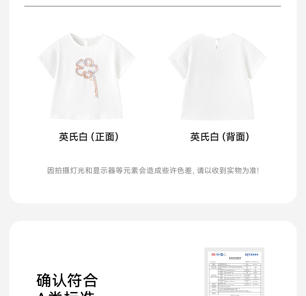 英氏女童短袖T恤夏季透气休闲宝宝上衣2025新款夏装YRTCJ2R021A
