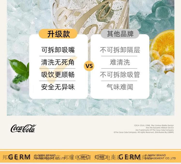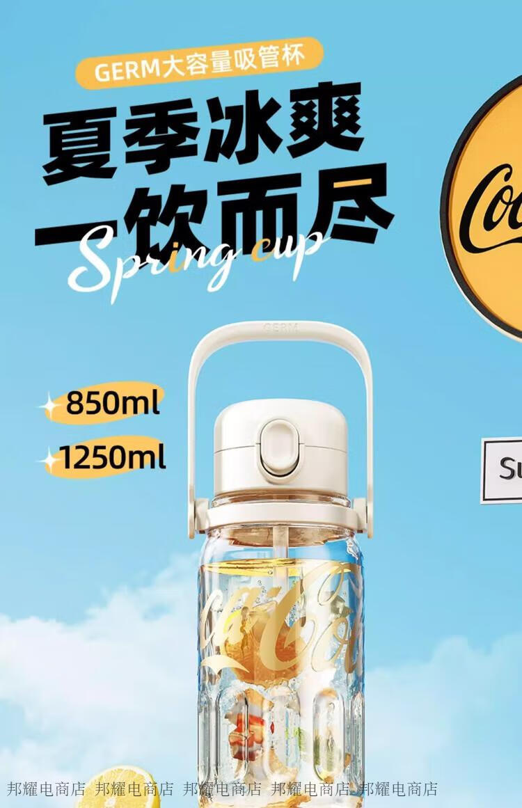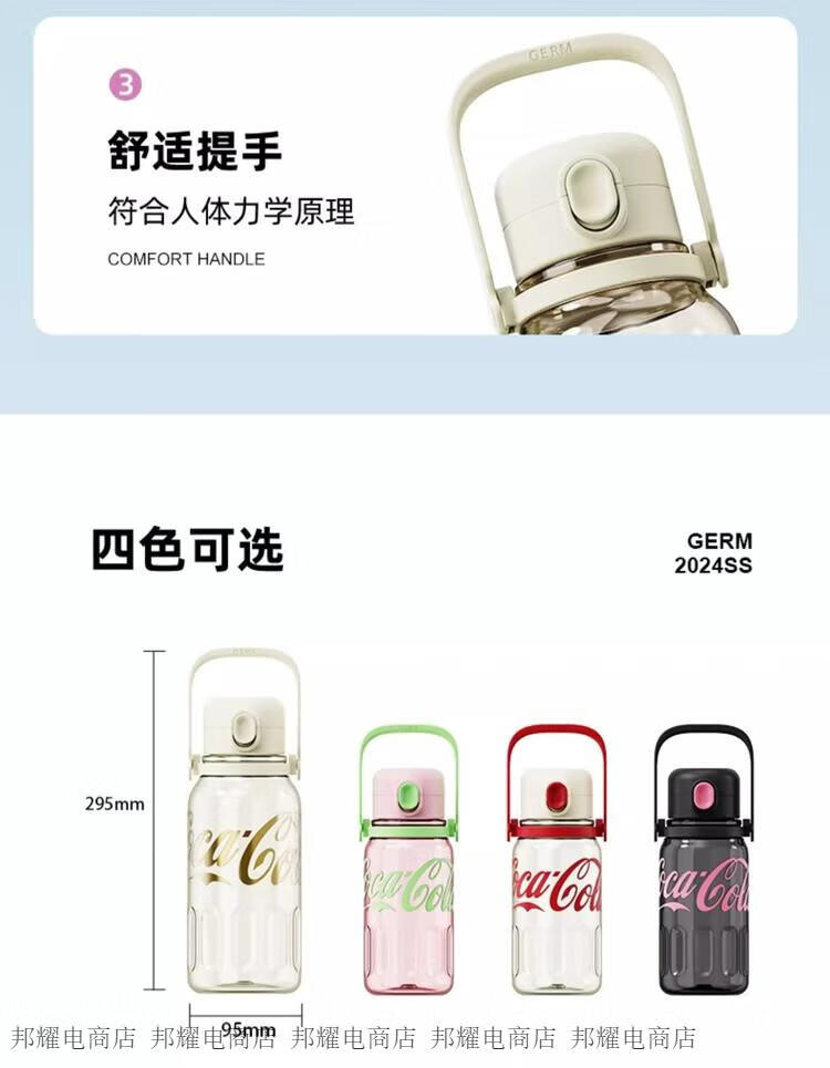 GERM律动杯可口可乐联名夏季塑料水杯大容量运动水壶耐高温吸管杯子
