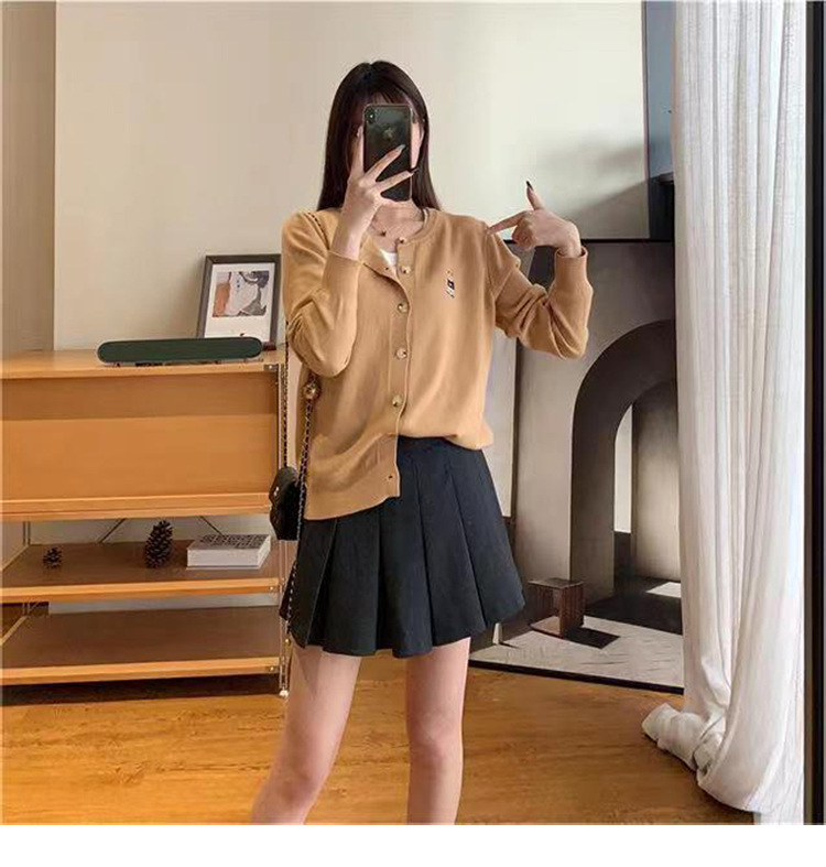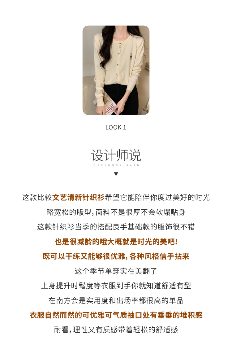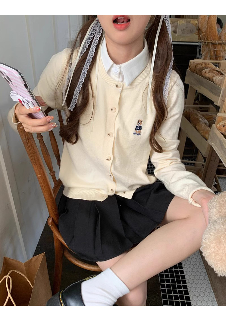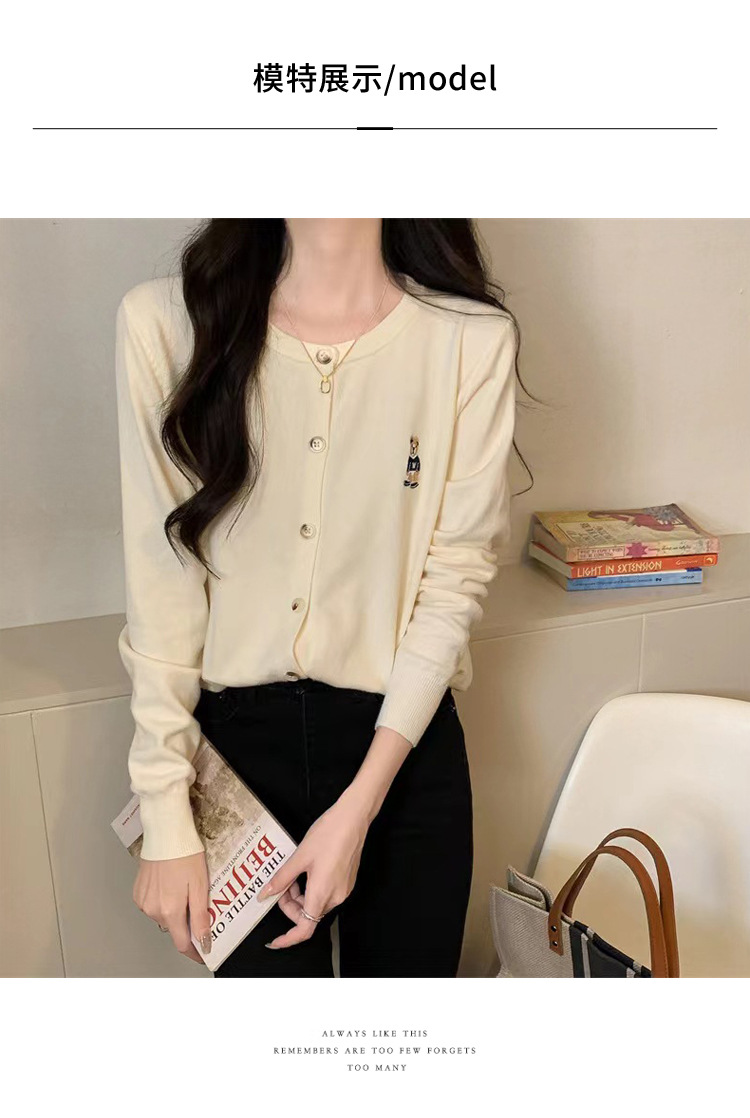 春秋季【小熊刺绣长袖针织衫开衫外套女】宽松纯色毛衣 短款上衣
