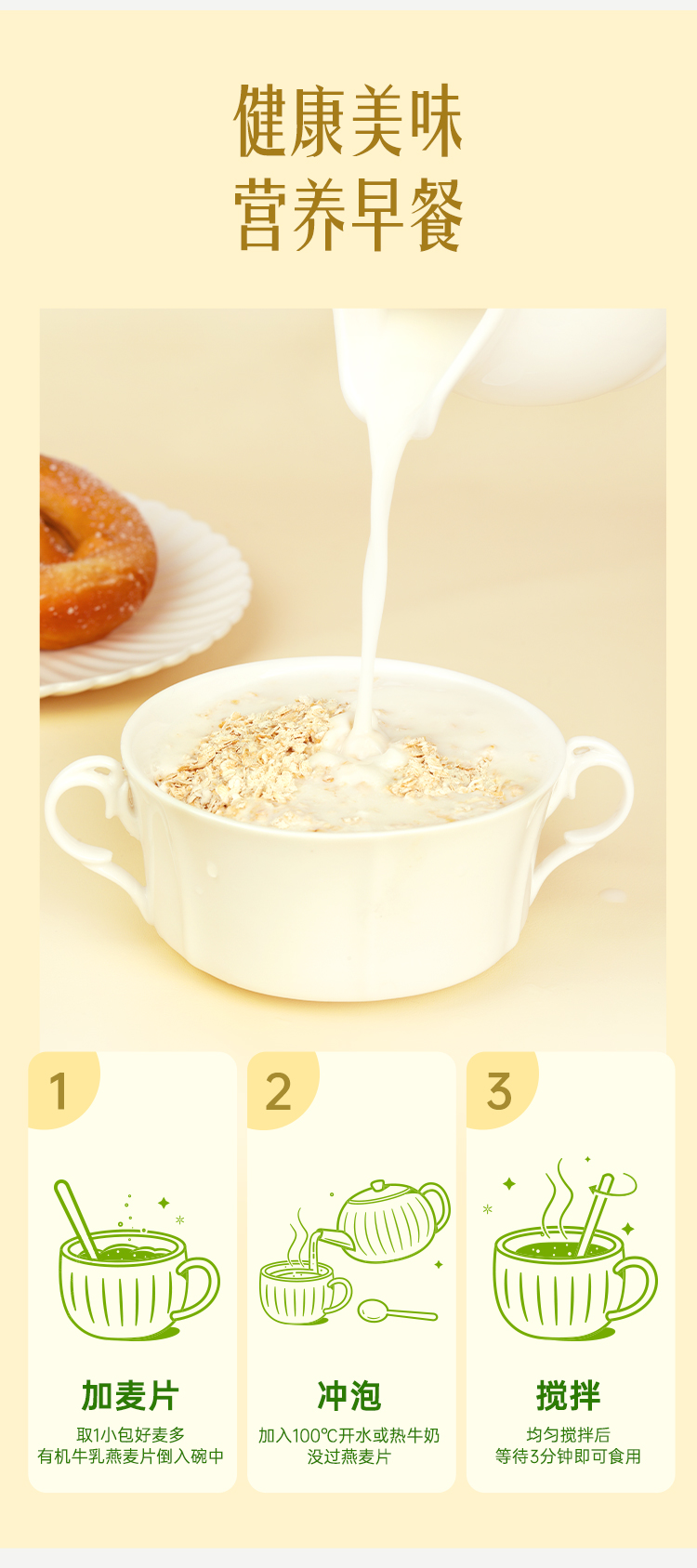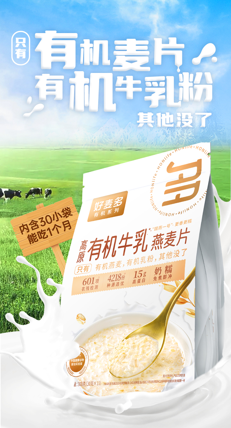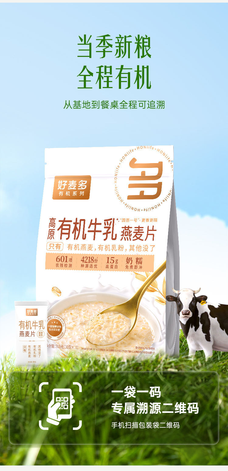 【奶糯】好麦多高原有机牛乳燕麦片300g*3袋装