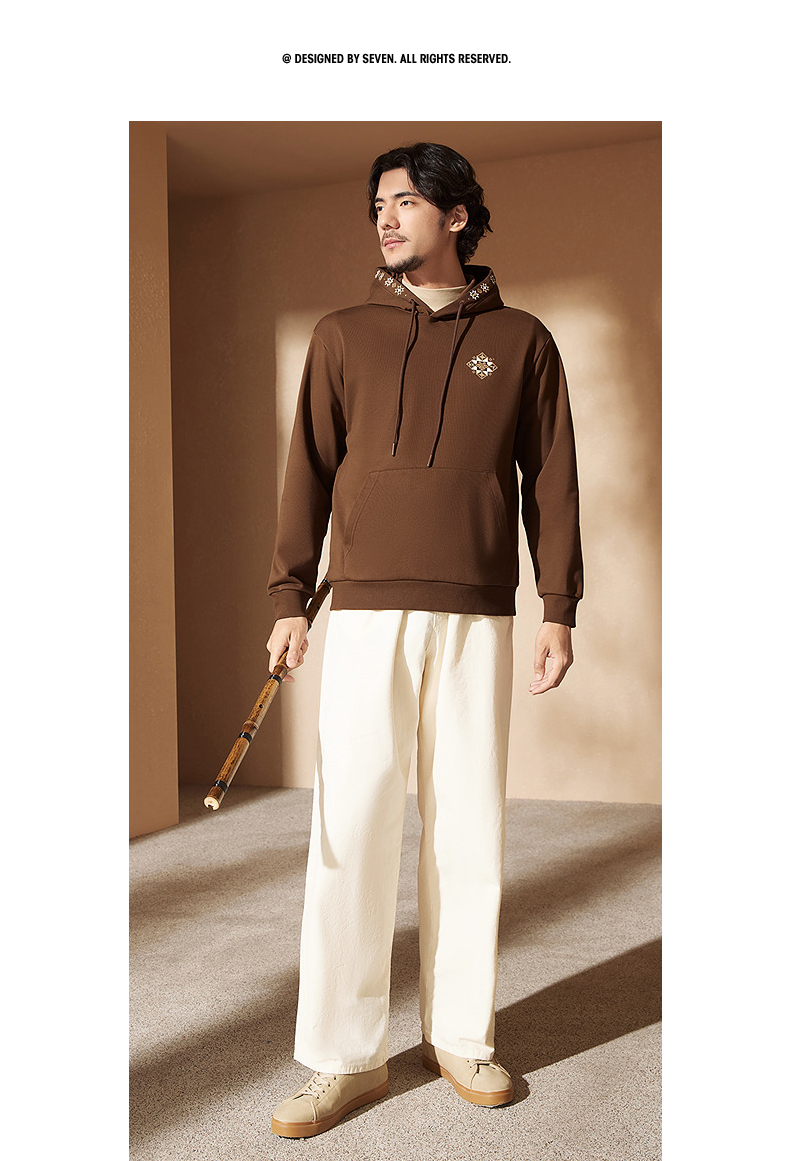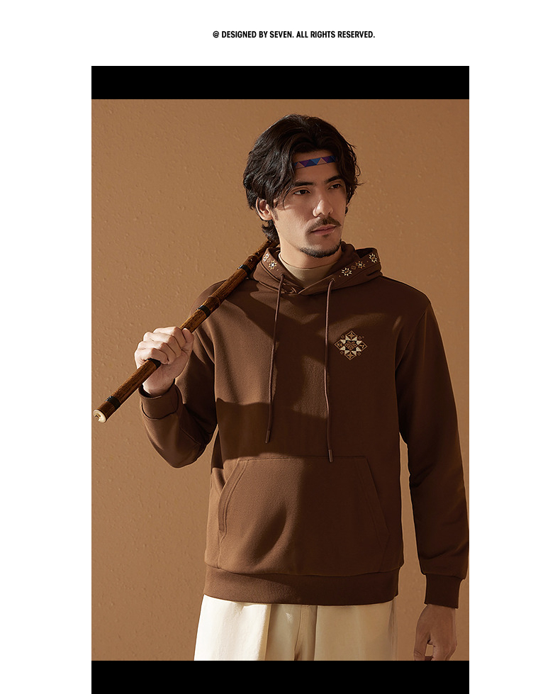 【非遗苗绣蝴蝶妈妈系列】柒牌卫衣男款连帽秋季新款时尚休闲上衣 127W70870