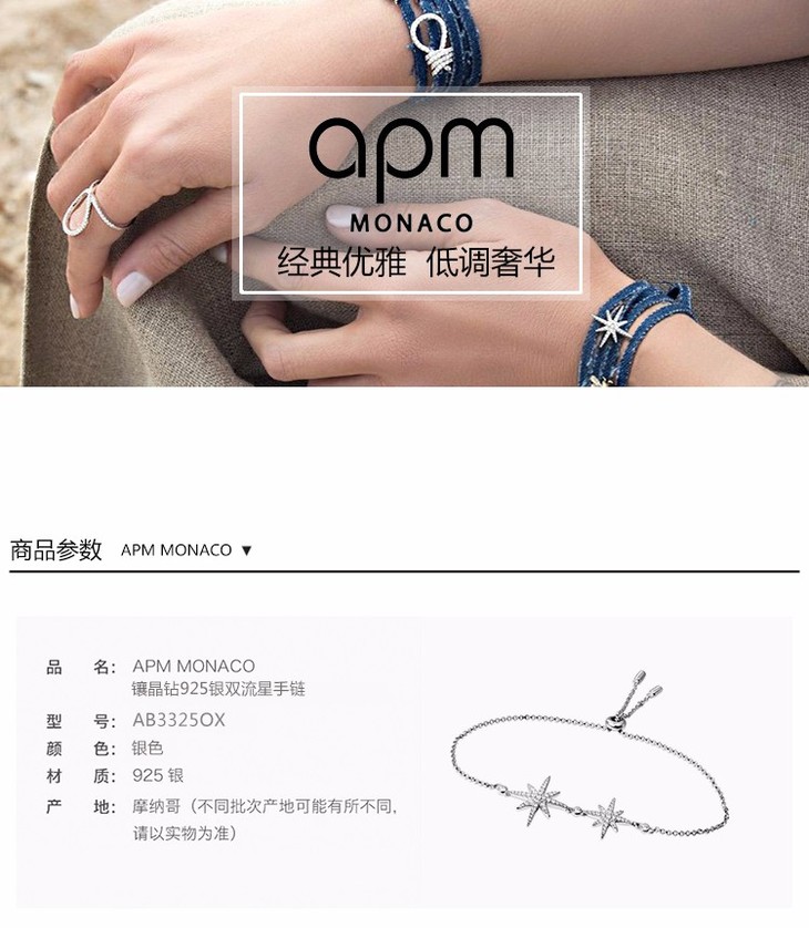 【品牌授权】法国 APM Monaco 两颗星星手链 AB3325OX