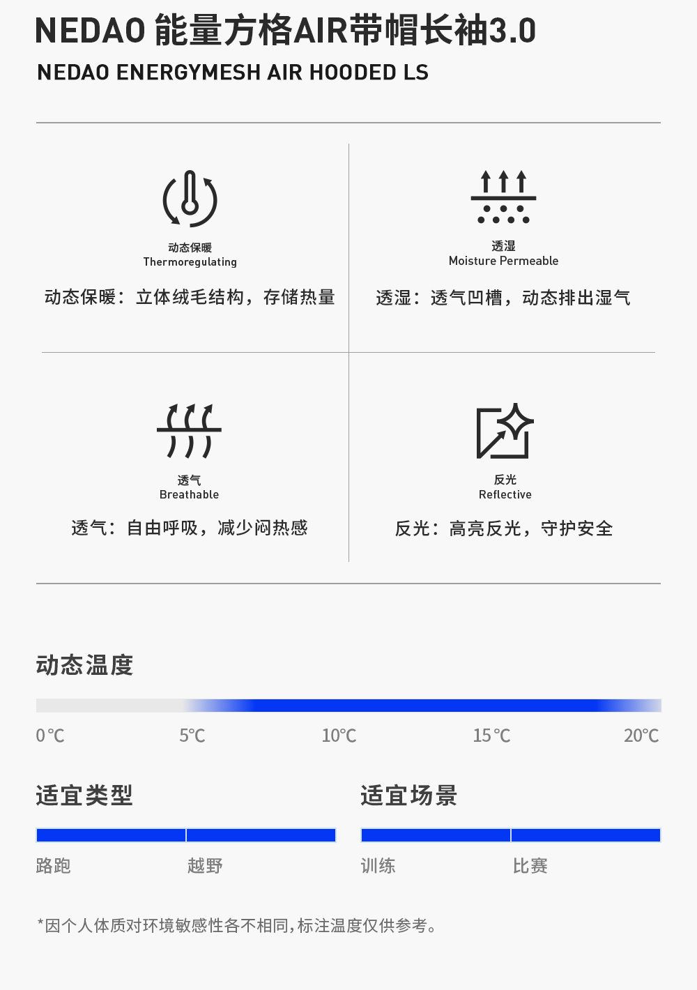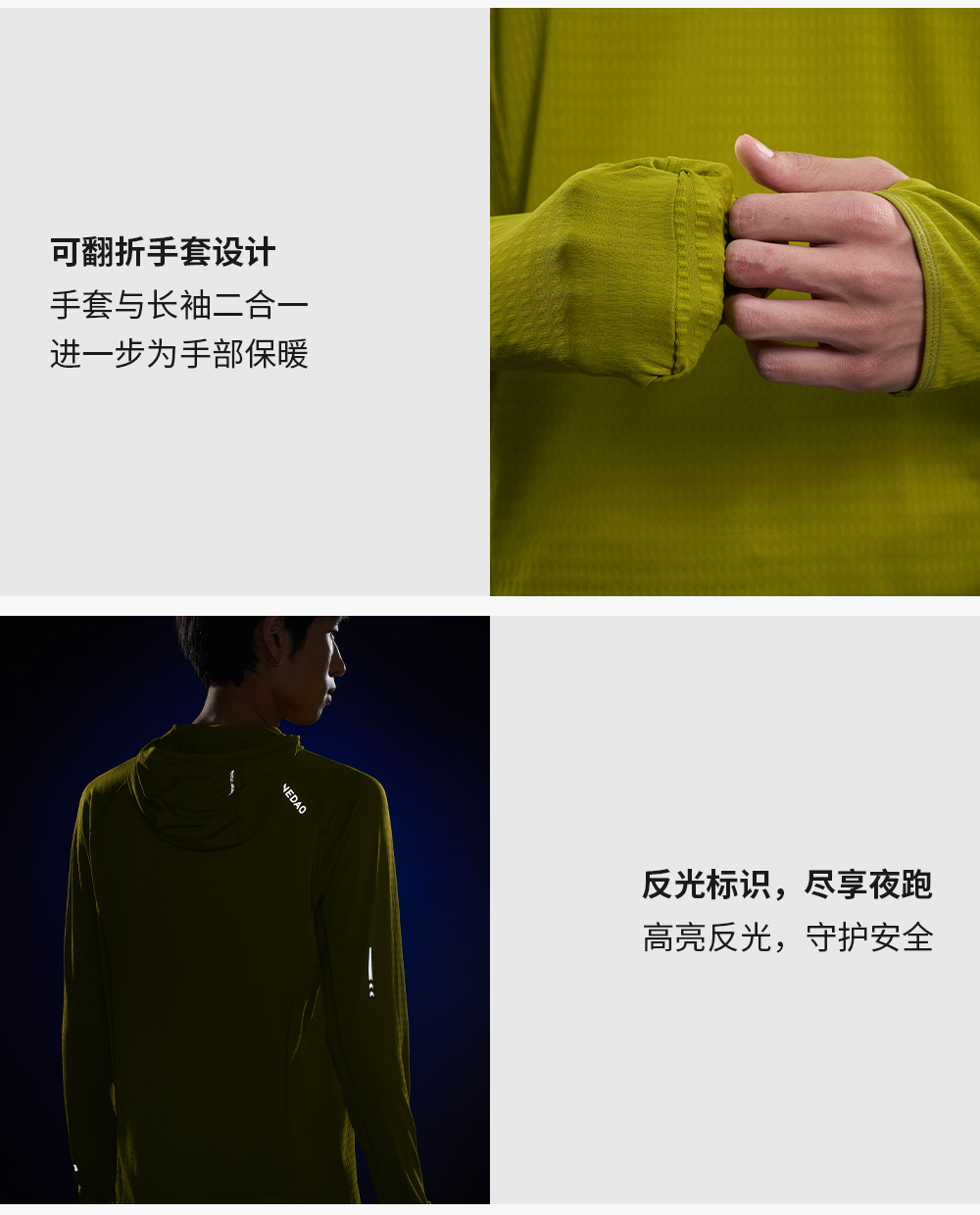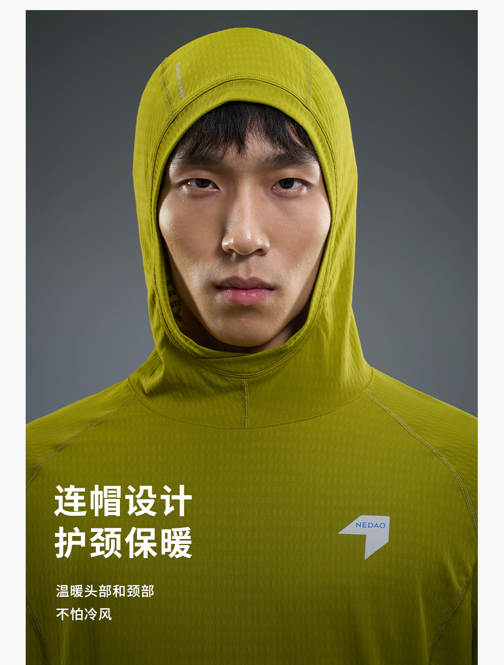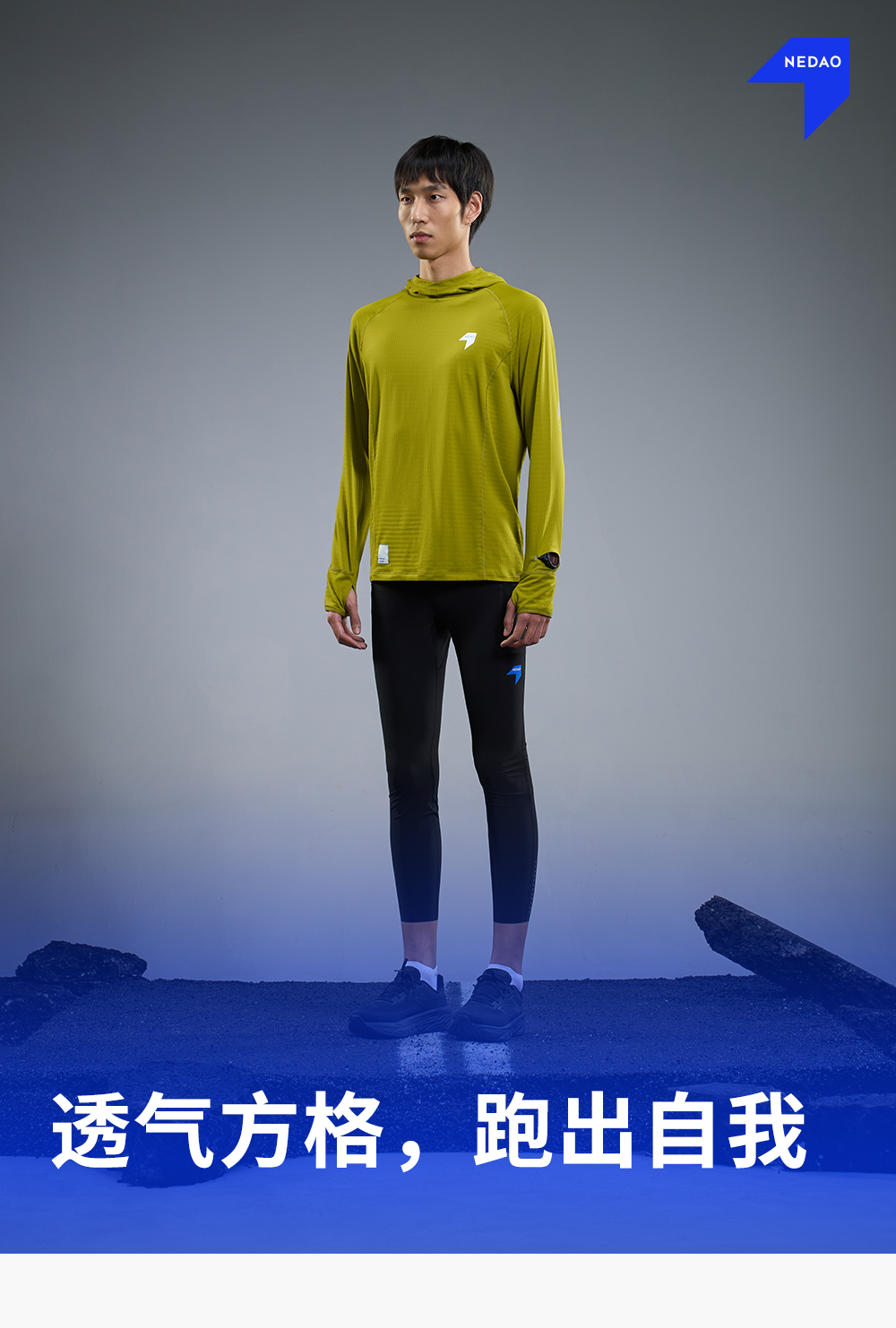 NEDAO内道新品能量方格AIR带帽长袖男士保暖透湿干爽马拉松男跑步长袖