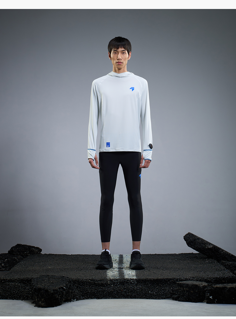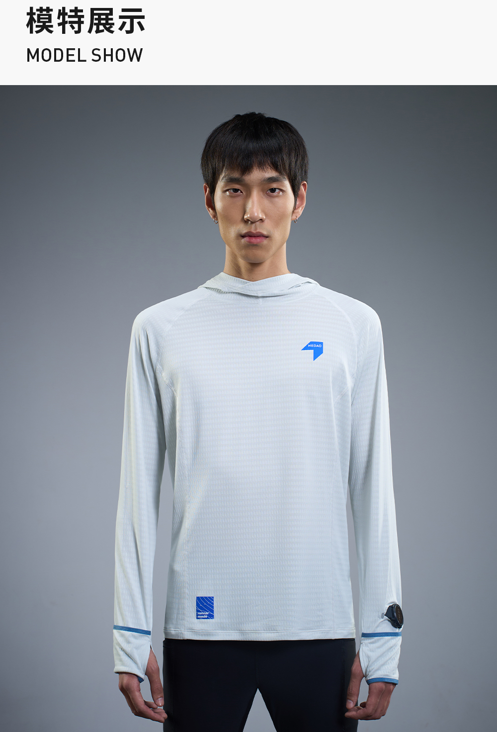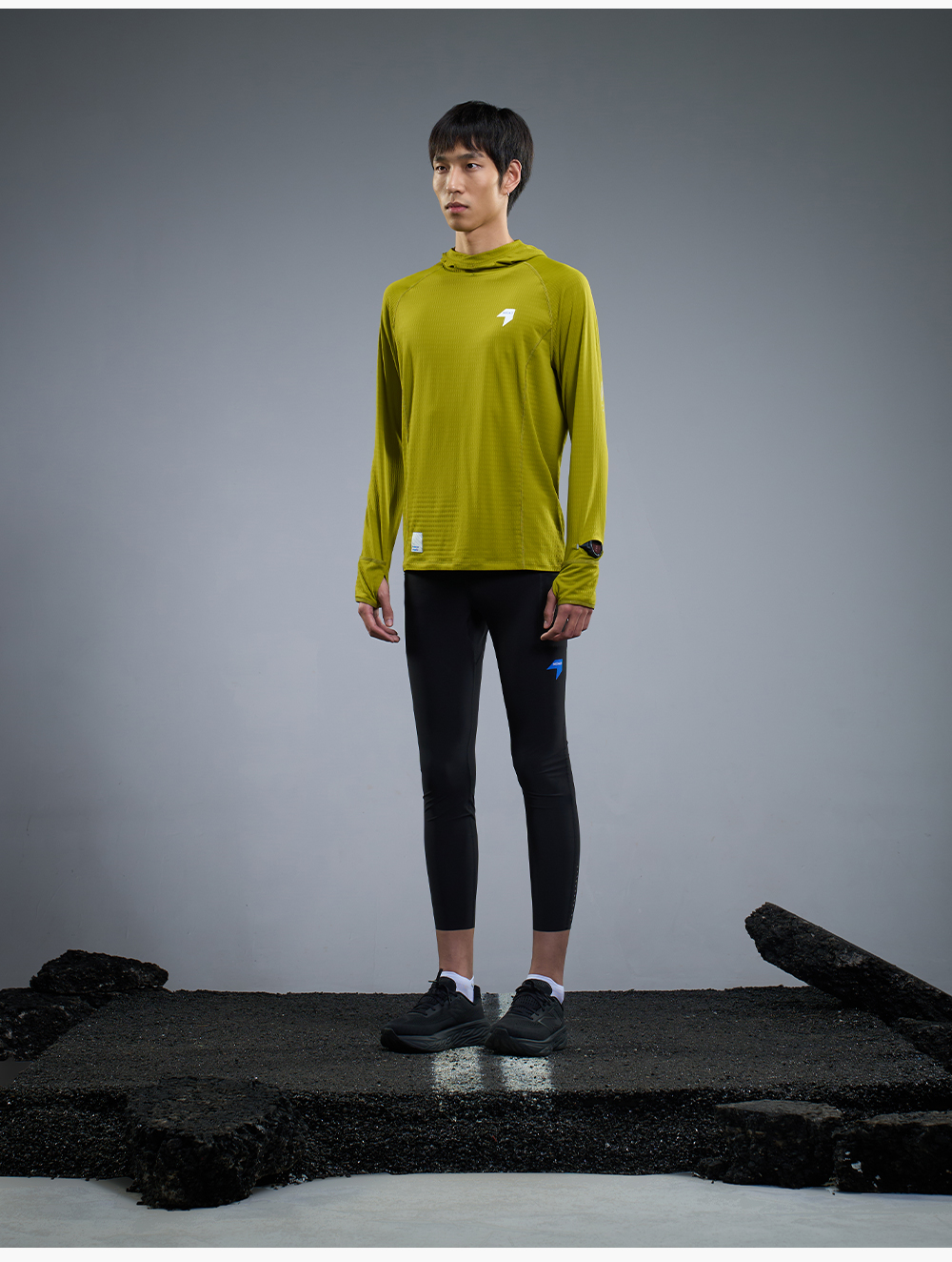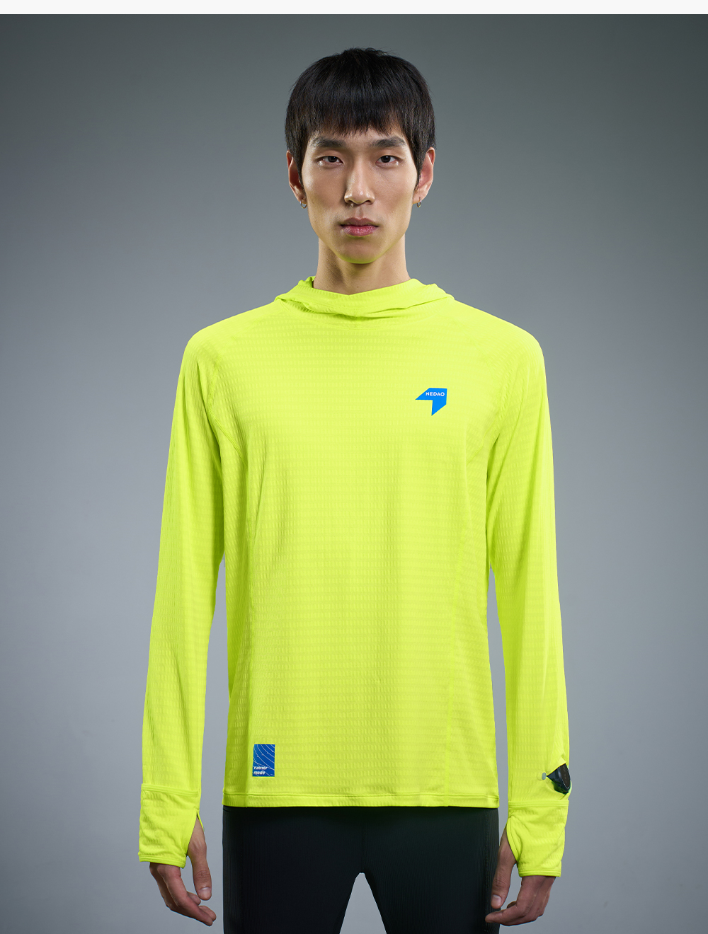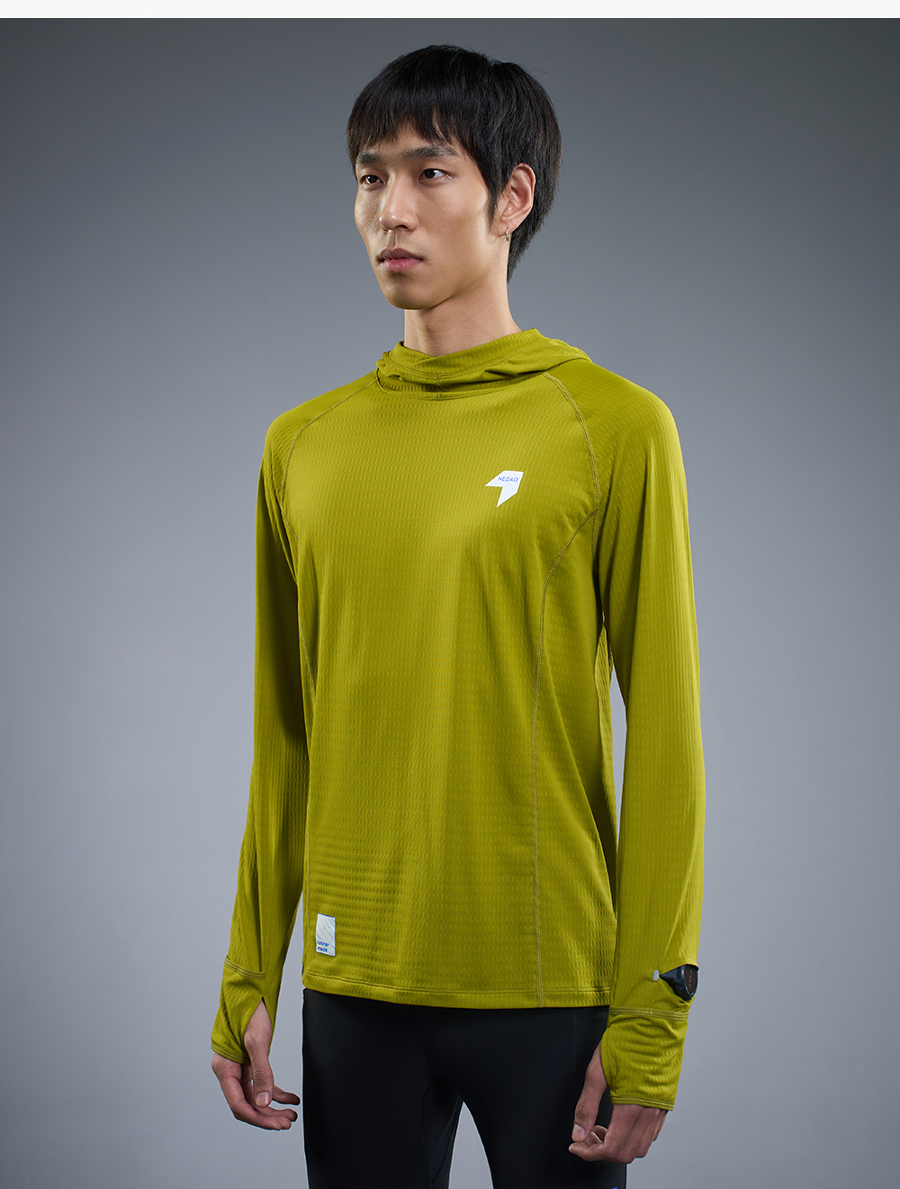 NEDAO内道新品能量方格AIR带帽长袖男士保暖透湿干爽马拉松男跑步长袖