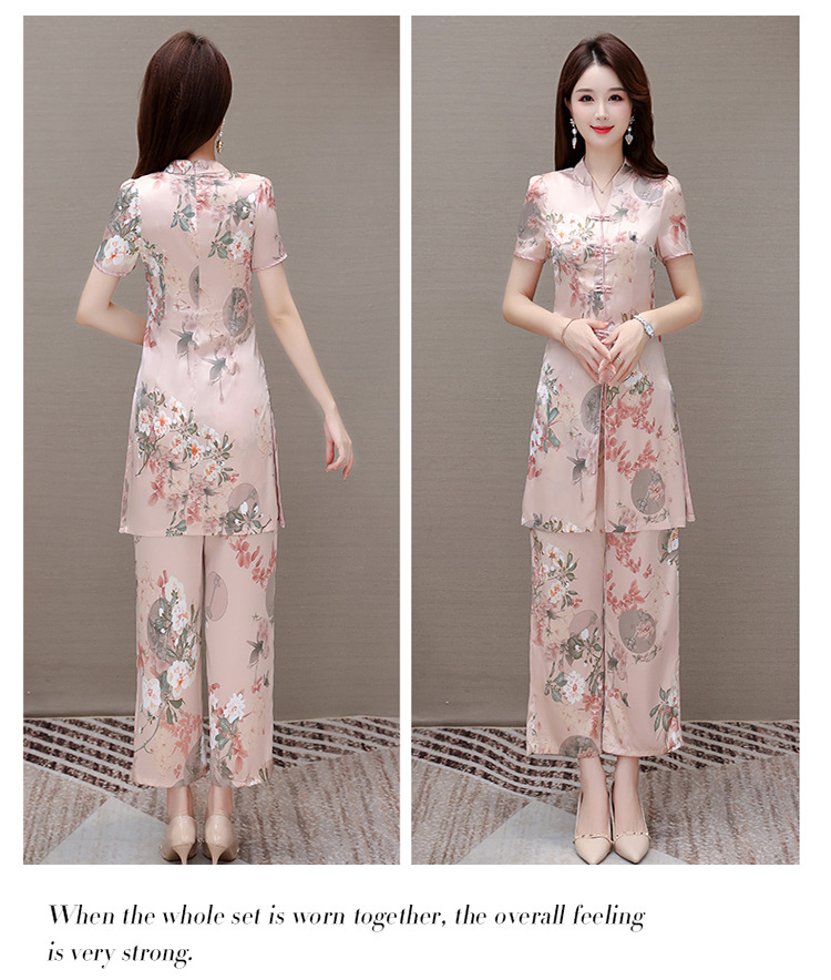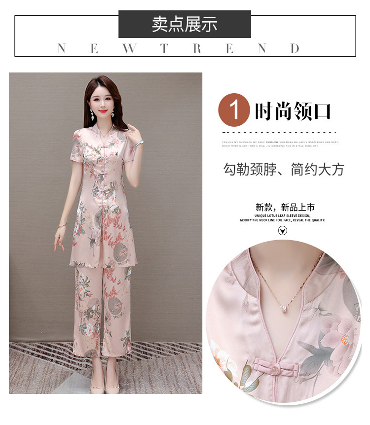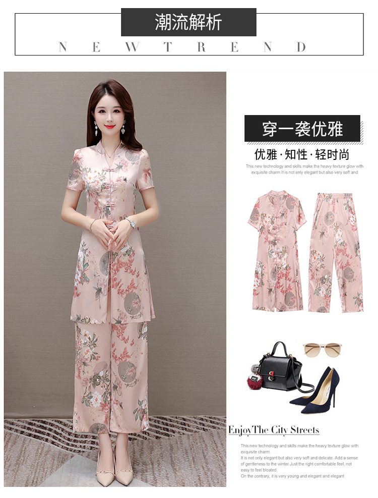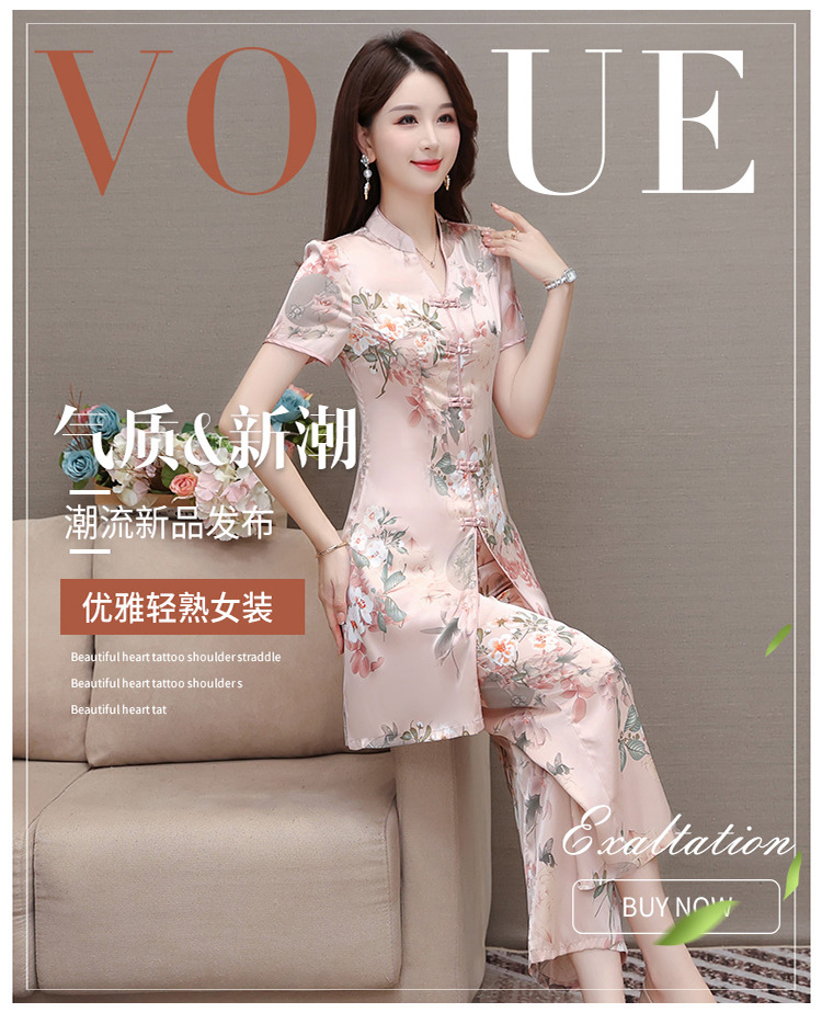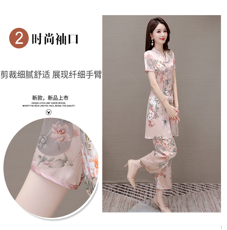 夏季新款,复古长袖直筒长裤妈妈装休闲两件印花套裤装QYM-TYP-A618-Y